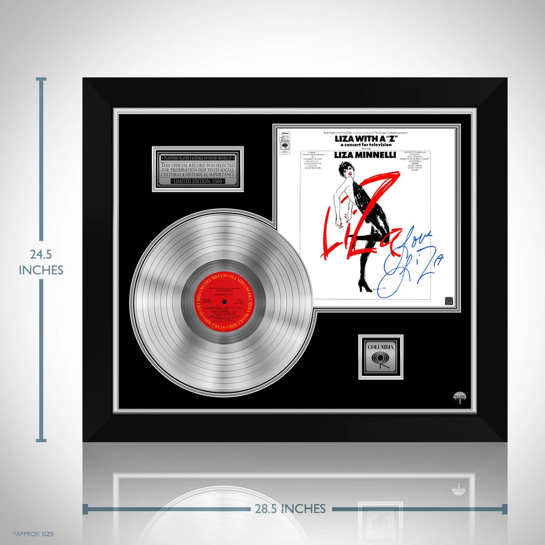 Pay homage to one of the most iconic American actress, dancer, and singer of all time Liza Minnelliย , with this gallery-framed, authentic Columbia records fully licensed facsimile of the official Hand-Signed Platinum Plated LP Record and LP Cover Liza with a Z Originally signed by Liza Minnelliย , of which is strictly limited to 100 units Worldwide and has been approved and numbered accordingly.