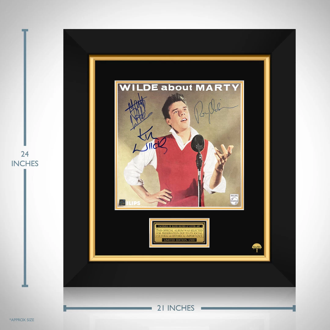 Pay homage to one of the most iconic English singer and songwriter of all time, Marty Wilde , with this gallery-framed, officially licensed, limited edition facsimile of the Hand-Signed Wilde about Mary LP Cover originally signed by Marty Wilde, Kim Wilde & Roy Orbison , of which is strictly limited to 100 units Worldwide, and has been approved and numbered accordingly.