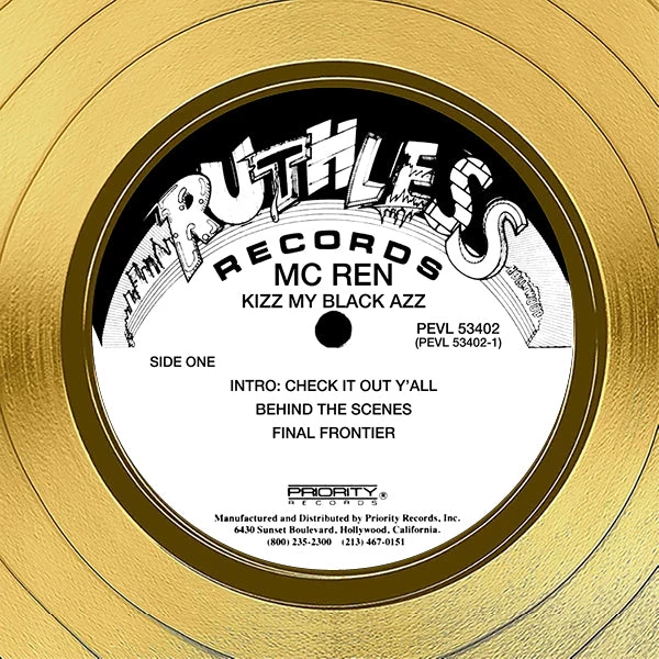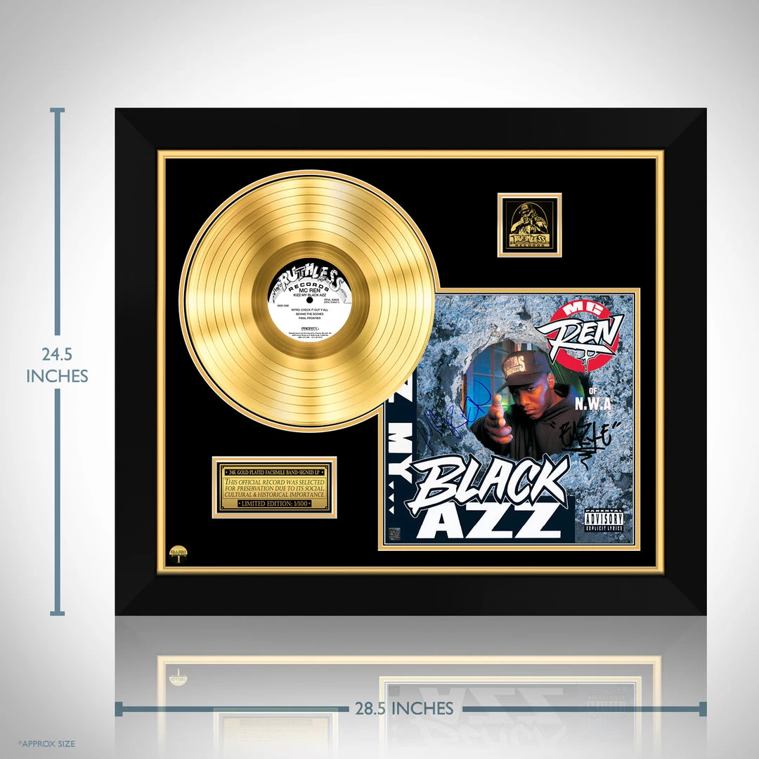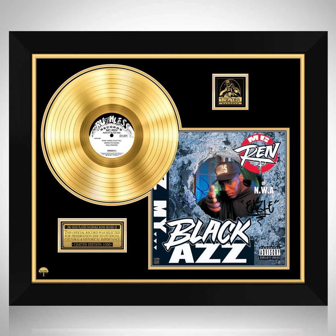 Pay homage to one of the most iconic American rapper, songwriter of all time MC Ren , with this gallery-framed, authentic Priority Records fully licensed facsimile of the official Hand-Signed 24K Gold LP Record and LP Cover Kizz my Black Azz Originally signed by MC Ren & Eazy-E , of which is strictly limited to 100 units Worldwide and has been approved and numbered accordingly.