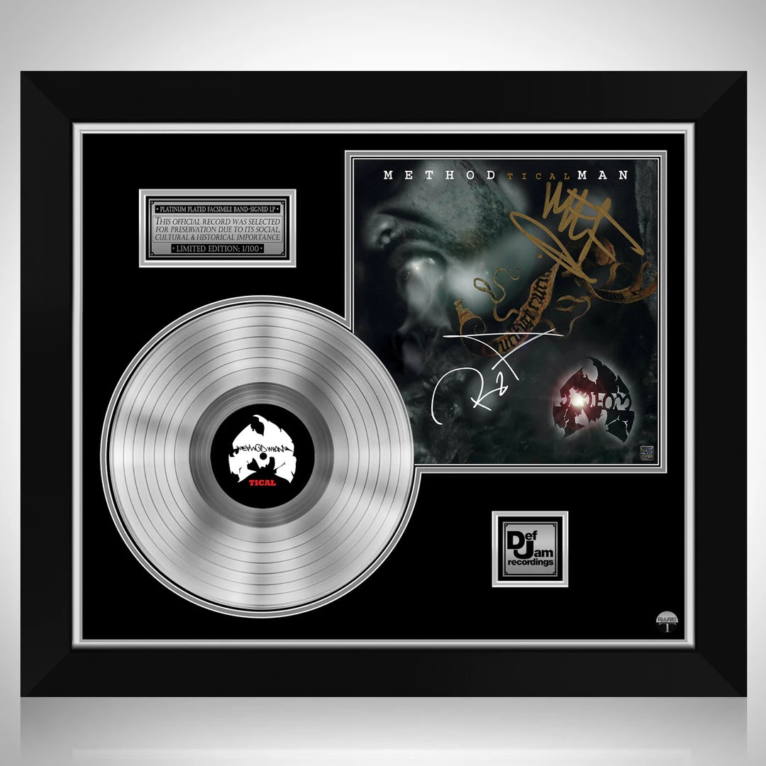 Pay homage to one of the most iconic American rapper of all time Method man , with this gallery-framed, authentic Def Jam records fully licensed facsimile of the official Hand-Signed Platinum Plated LP Record and LP Cover Tical Originally signed by Method man & RZA , of which is strictly limited to 100 units Worldwide and has been approved and numbered accordingly.