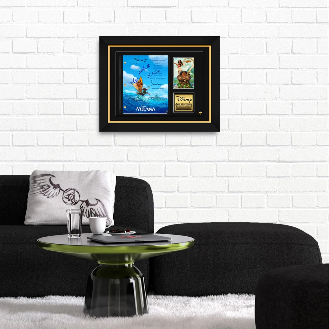 Pay homage to Moana , with this Walt Disney Studio fully licensed facsimile of the official signed movie script, originally signed by actors Auli’i Cravalho, Dwayne ‘The Rock’ Johnson, Rachel House, Temuera Morrison, Jemaine Clement, Nicole Scherzinger & Alan Tudyk , of which is strictly limited to 100 units Worldwide and has been approved and numbered accordingly.
