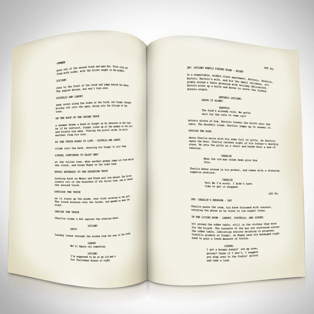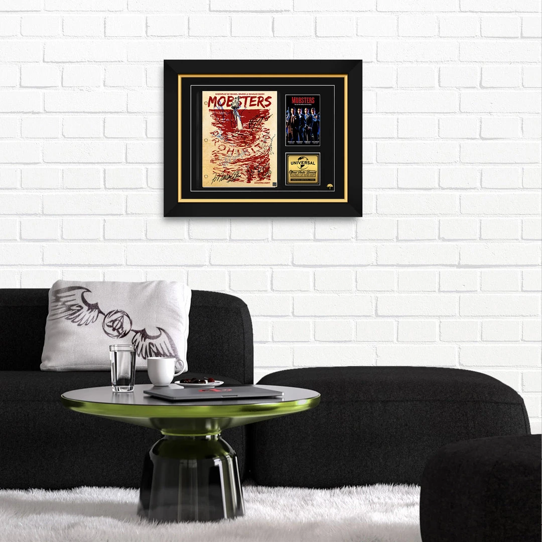 — Collector Grade Proprietary Exclusive VELVET TOUCH water/scratch resistant cover. — Collectible Facsimile of Original Hand-Signed Mobsters movie Script Custom Frame.