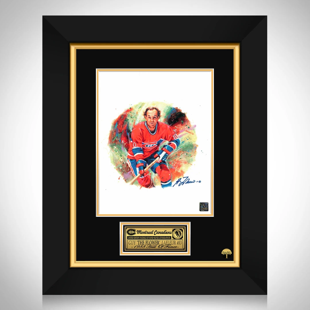 Pay homage to Guy Lafleurย with this gallery-framed, officially licensed, limited edition facsimile of the Hand-Signed photo, originally signed by Guy Lafleur. of which is strictly limited to 100 units Worldwide, and has been approved and numbered accordingly.