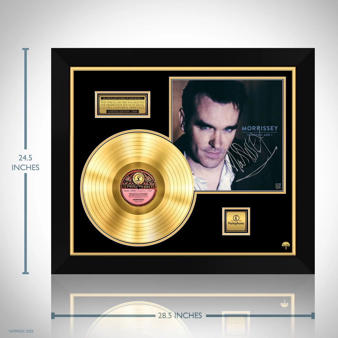 Pay homage to one of the most iconic English singer, songwriter of all time Morrissey , with this gallery-framed, authentic Parlophone Records fully licensed facsimile of the official Hand-Signed 24K Gold LP Record and LP Cover Vauxhall and I Originally signed by Morrissey , of which is strictly limited to 100 units Worldwide and has been approved and numbered accordingly.