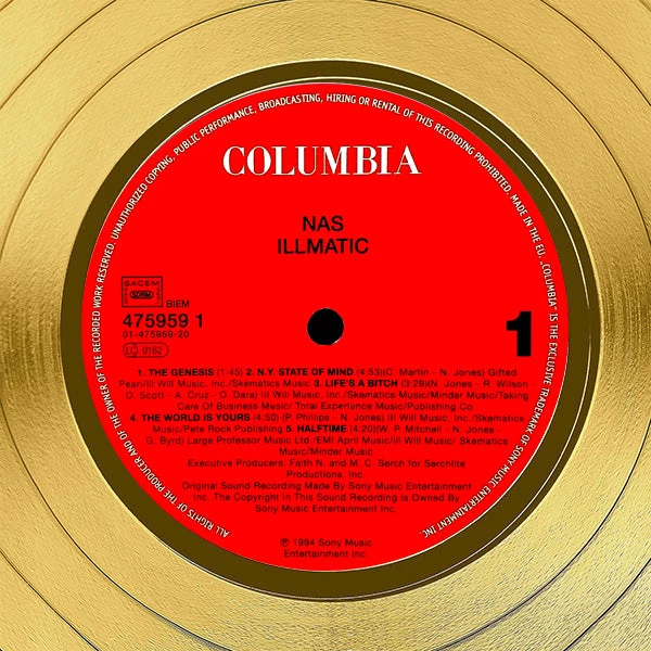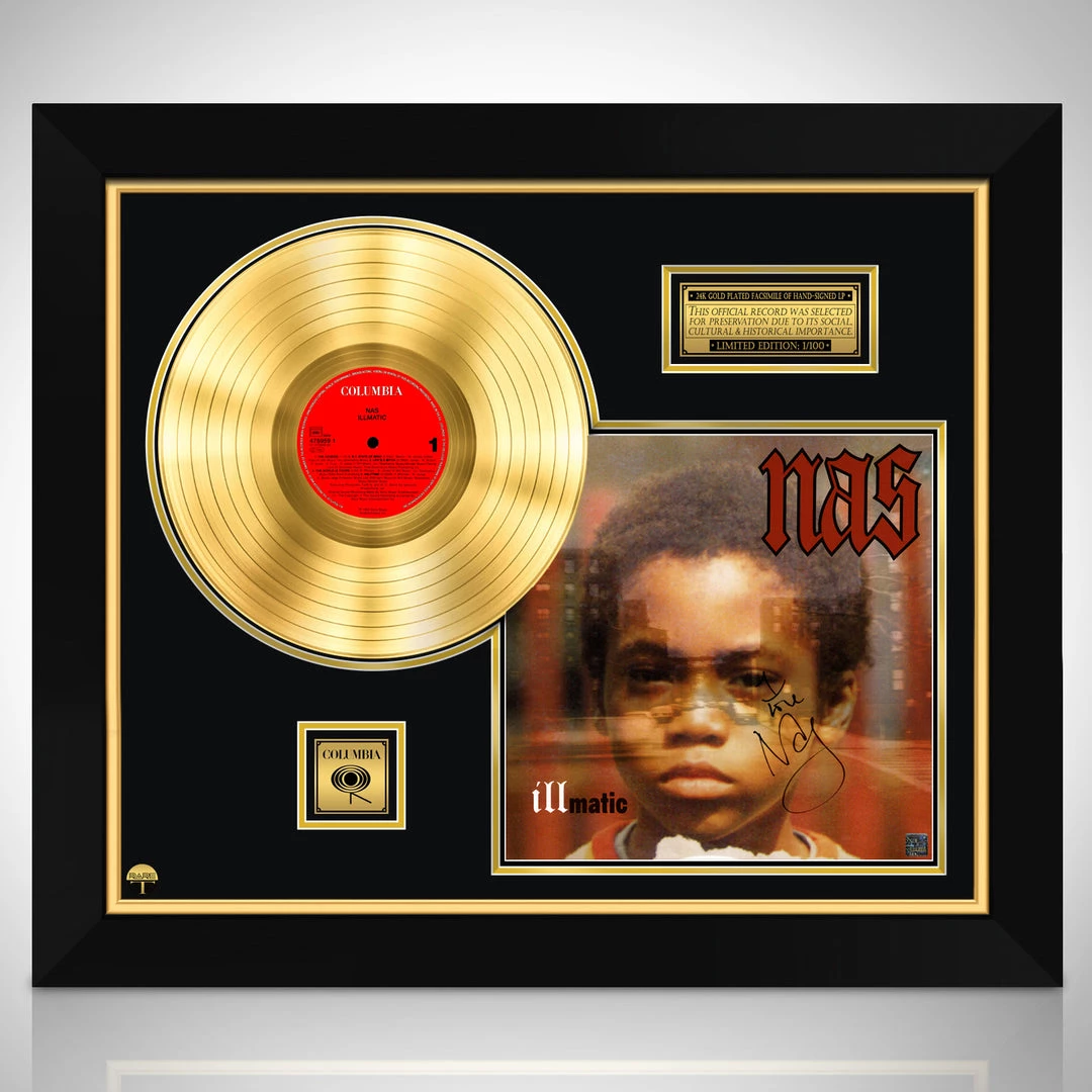 Pay homage to one of the most iconic rapper of all time Nas , with this gallery-framed, authentic Columbia records fully licensed facsimile of the official Hand-Signed 24K Gold LP Record and LP Cover Illmatic Originally signed by Nas , of which is strictly limited to 100 units Worldwide and has been approved and numbered accordingly.