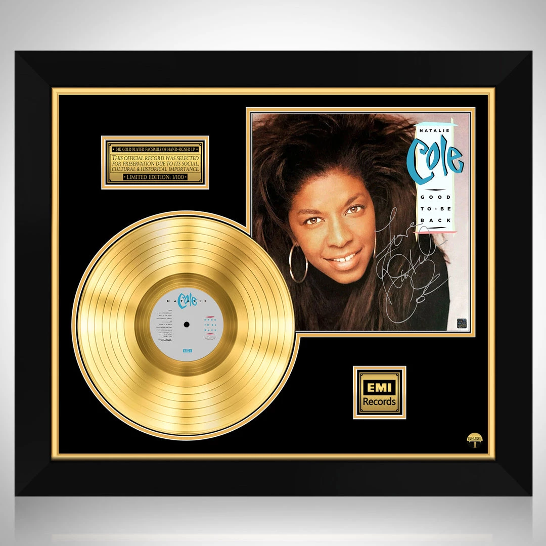Pay homage to one of the most iconic American singer, songwriter, and actress of all time Natalie Cole , with this gallery-framed, authentic EMI Records fully licensed facsimile of the official Hand-Signed 24K Gold LP Record and LP Cover Good to be Back Originally signed by Natalie Cole , of which is strictly limited to 100 units Worldwide and has been approved and numbered accordingly.