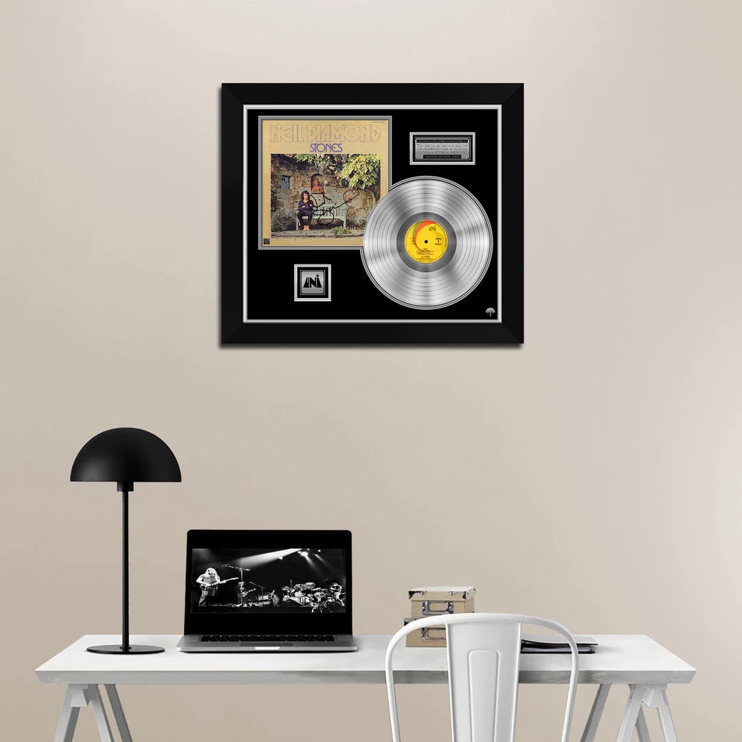 โ Collectible Neil Diamond Facsimile Hand-Signed Platinum Plated LP Custom Frame