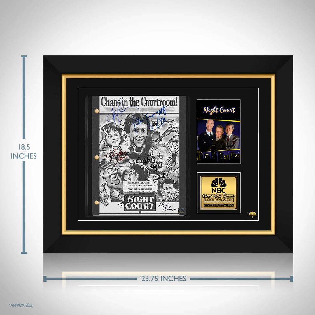 Pay homage to Night Court , with this NBC fully licensed facsimile of the official signed movie script, originally signed by actors Harry Anderson, John larroquette, richard moll, Charles Robinson, Markie Post & Marsha Warfield , of which is strictly limited to 100 units Worldwide and has been approved and numbered accordingly.