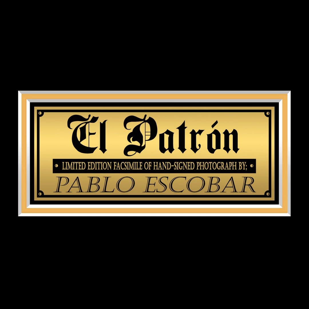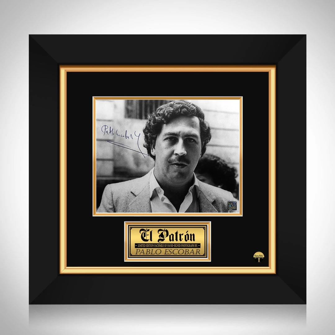 Pay homage to Pablo Escobar , with this gallery-framed, officially licensed, limited edition facsimile of hand-signed photo, originally signed by Pablo Escobar , of which is strictly limited to 100 units Worldwide, and has been approved and numbered accordingly.
