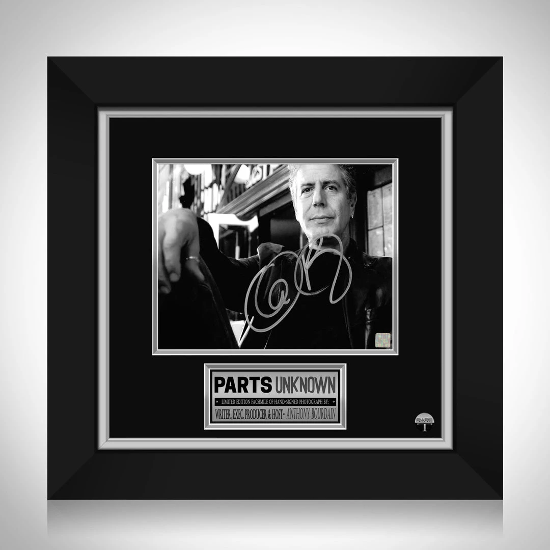 Pay homage to Anthony Bourdain and one of the greatest travel and food series in television history, CNN’s Parts Unknown, with this gallery-framed, officially licensed, limited edition facsimile of hand-signed photo, originally signed by celebrity chef and travel documentarian, the late Anthony Bourdain, of which is strictly limited to 100 units Worldwide, and has been approved and numbered accordingly.