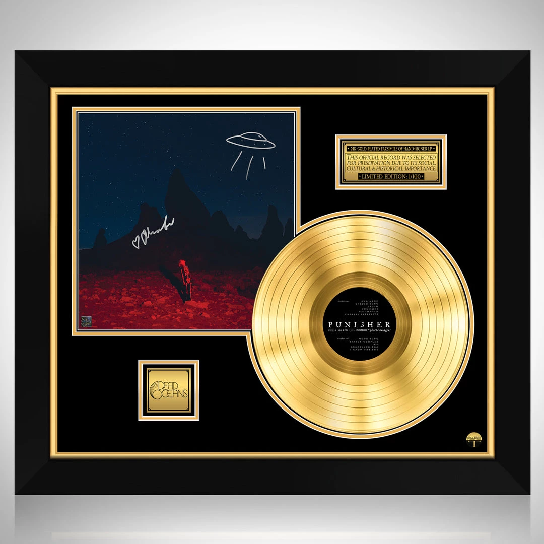 Pay homage to one of the most iconic American singer-songwriter of all time Phoebe Bridgers , with this gallery-framed, authentic Dead Oceans Records fully licensed facsimile of the official Hand-Signed 24K Gold LP Record and LP Cover Punisher Originally signed by Phoebe Bridgers , of which is strictly limited to 100 units Worldwide and has been approved and numbered accordingly.