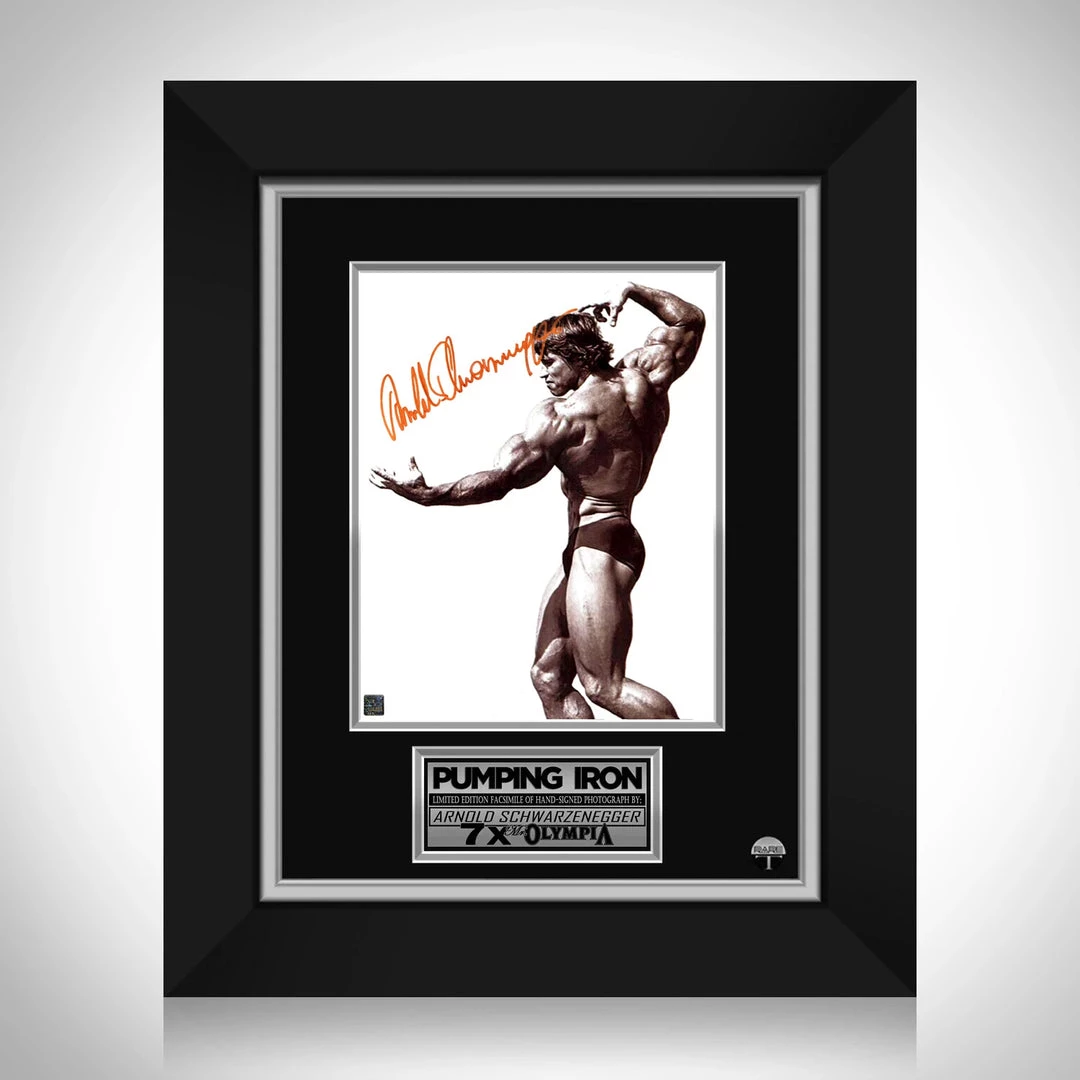Pay homage to Arnold Schwarzenegger and one of the most iconic docudramas of all time, Pumping Iron, with this gallery-framed, officially licensed, limited edition facsimile of the Hand-Signed photo of Arnold in his world famous bodybuilding pose, originally signed by politician, actor, filmmaker, businessman, author, and former professional bodybuilder, Arnold Schwarzenegger of which is strictly limited to 100 units Worldwide, and has been approved and numbered accordingly.