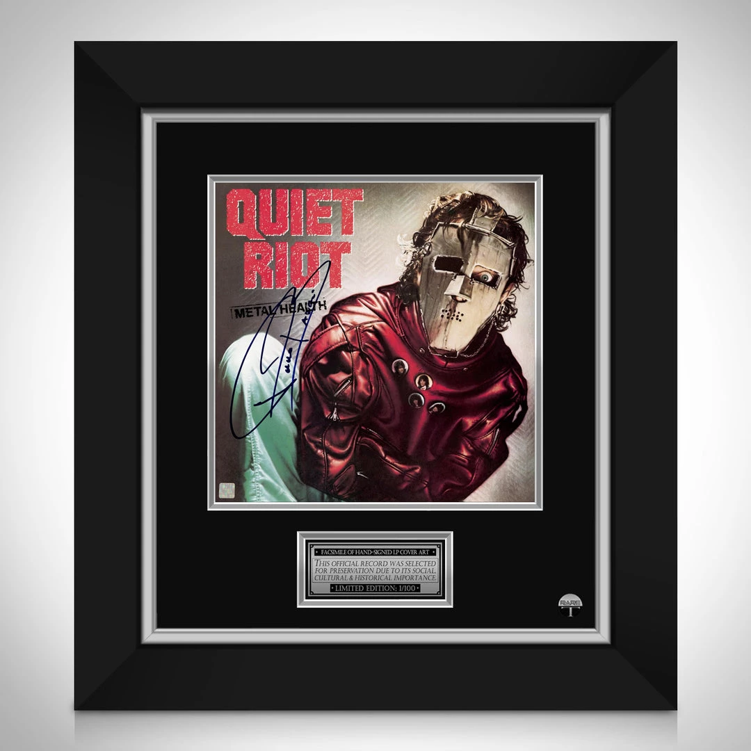 Pay homage to one of the greatest heavy metal bands of all time, Quiet Riot, with this gallery-framed, officially licensed, limited edition facsimile of the Hand-Signed, Metal Health LP Cover originally signed by drummer & back vocalist Frankie Banali, of which is strictly limited to 100 units Worldwide, and has been approved and numbered accordingly.