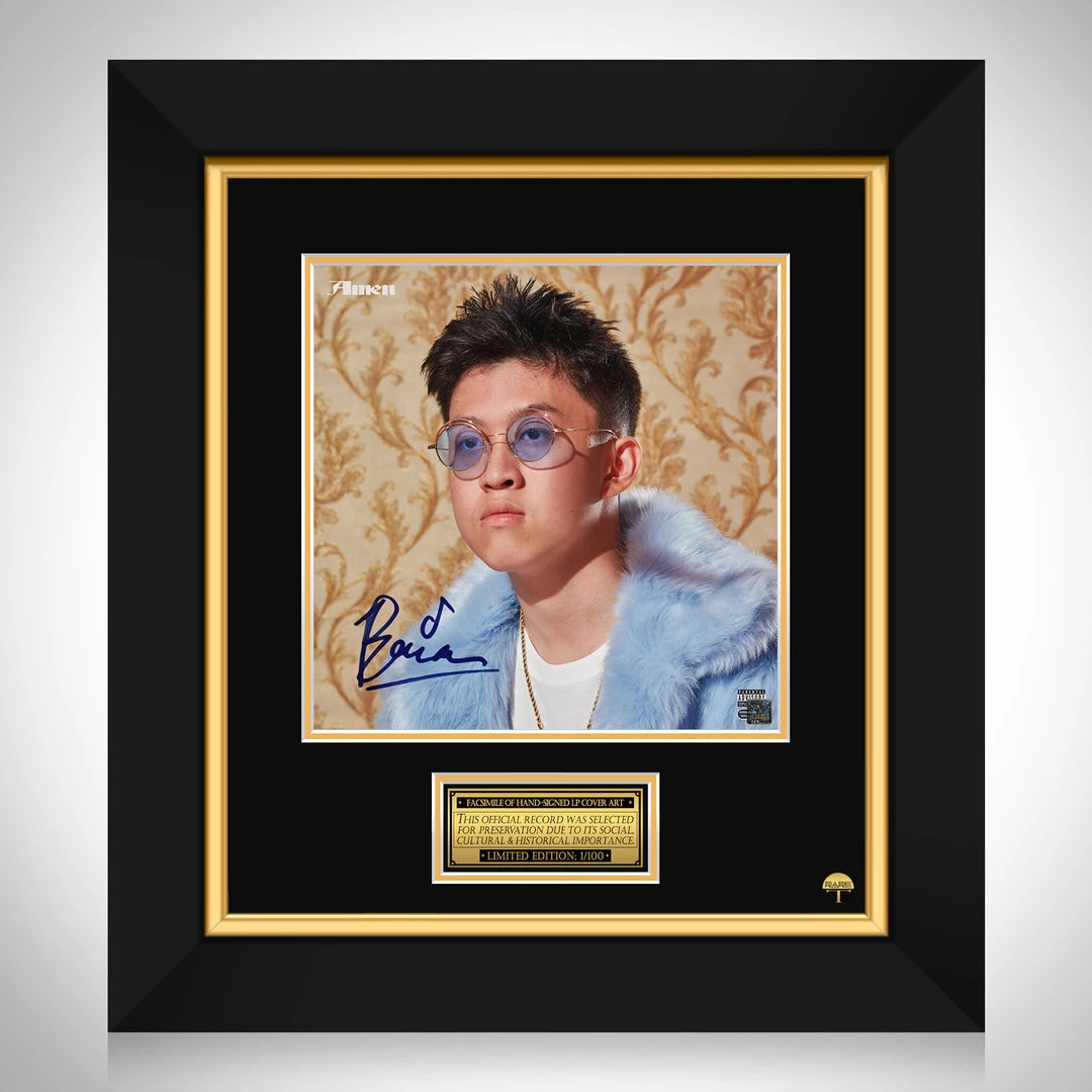 Pay homage to one of the most iconic Indonesian rapper and singer of all time, Rich Brian , with this gallery-framed, officially licensed, limited edition facsimile of the Hand-Signed Amen LP Cover originally signed by Rich Brian , of which is strictly limited to 100 units Worldwide, and has been approved and numbered accordingly.