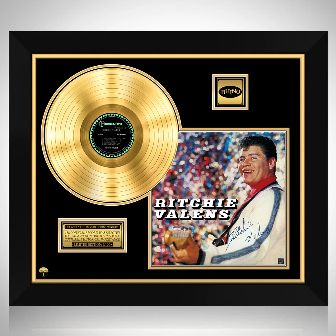 Pay homage to one of the most iconic American singer, songwriter of all time Ritchie Valens , with this gallery-framed, authentic Rhino Records fully licensed facsimile of the official Hand-Signed 24K Gold LP Record and LP Cover Self-titled Originally signed by Ritchie Valens , of which is strictly limited to 100 units Worldwide and has been approved and numbered accordingly.