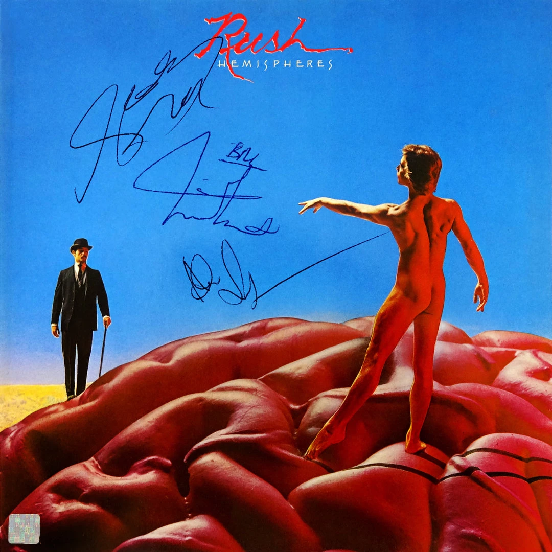 ฦ?? Collectible RUSH Hemispheres facsimile of hand-signed 24k Gold Plated LP Custom Frame