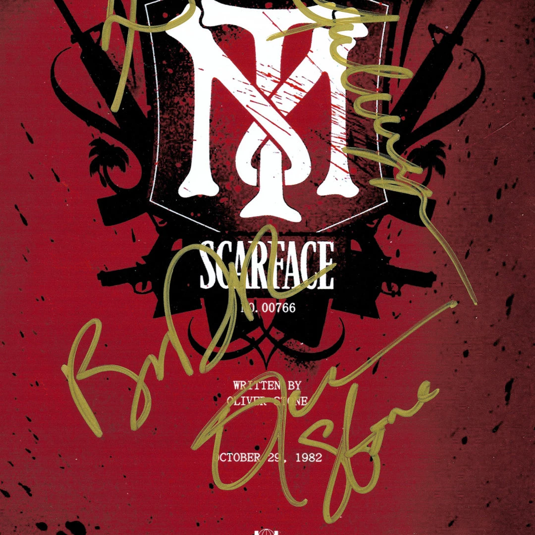 Pay homage to Scarface , with this Universal Pictures  fully licensed facsimile of the official signed movie script, originally signed by actors Al Pacino, Brian De Palma, Michelle Pfeiffer and director/filmmaker/writer Oliver Stone , of which is strictly limited to 100 units Worldwide and has been approved and numbered accordingly.