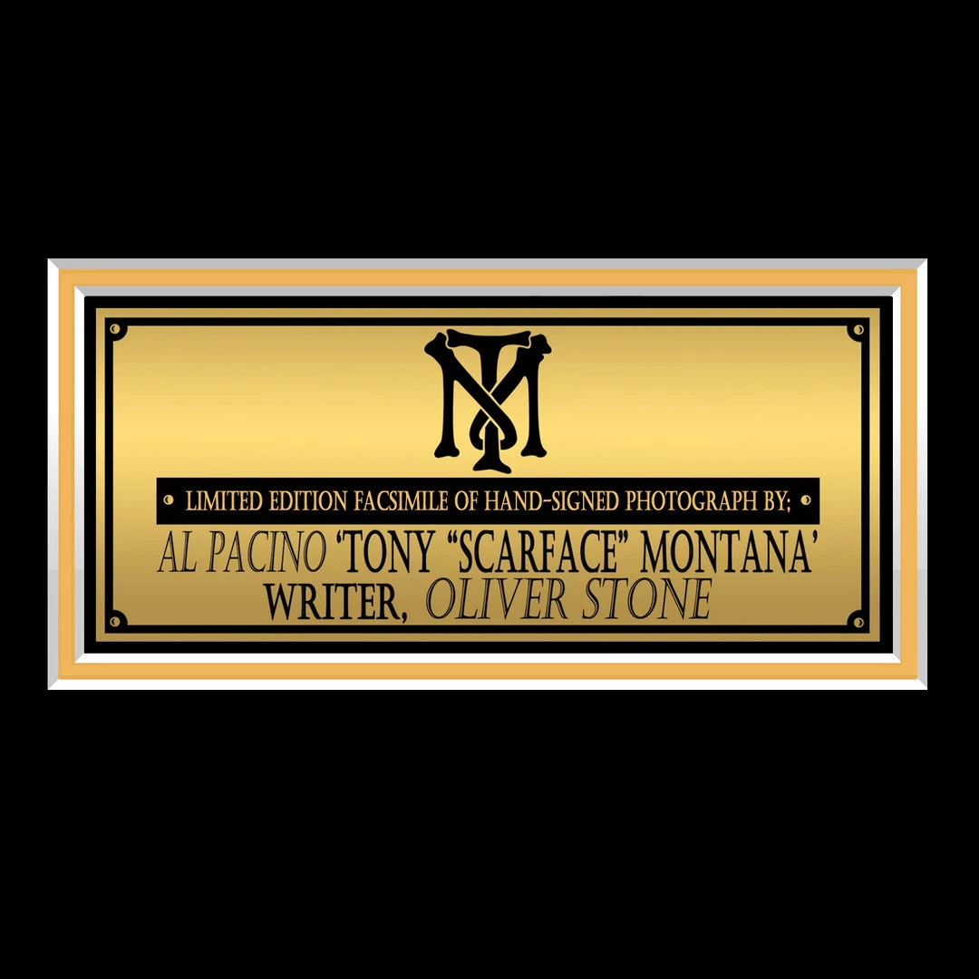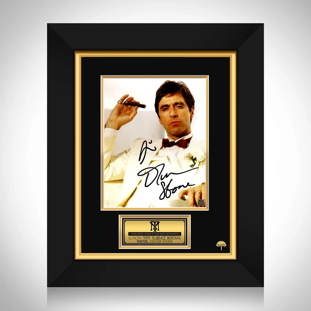 Pay homage to the iconic mobster Tony Montana and one of the most greatest and most influential movies of all time, Scarface, with this gallery-framed, officially licensed, limited edition facsimile of hand-signed movie photo, originally signed by legendary actor, filmmaker Al Pacino and director, screenwriter and producer Oliver Stone, of which is strictly limited to 100 units Worldwide, and has been approved and numbered accordingly.