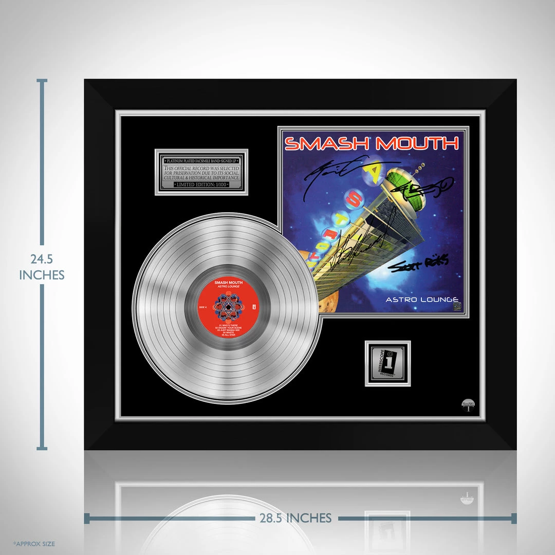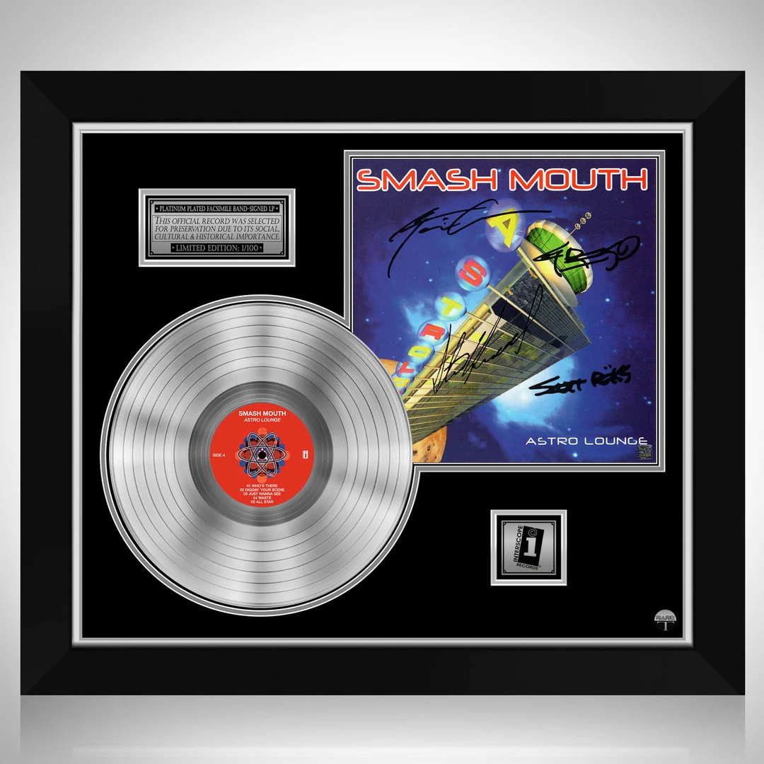 Pay homage to one of the most iconic American rock band of all time Smash Mouth , with this gallery-framed, authentic Interscope Records fully licensed facsimile of the official Hand-Signed Platinum Plated LP Record and LP Cover Astro Lounge Originally signed by Steve Harwell, Paul De Lisle, Greg Camp & Kevin Coleman , of which is strictly limited to 100 units Worldwide and has been approved and numbered accordingly.