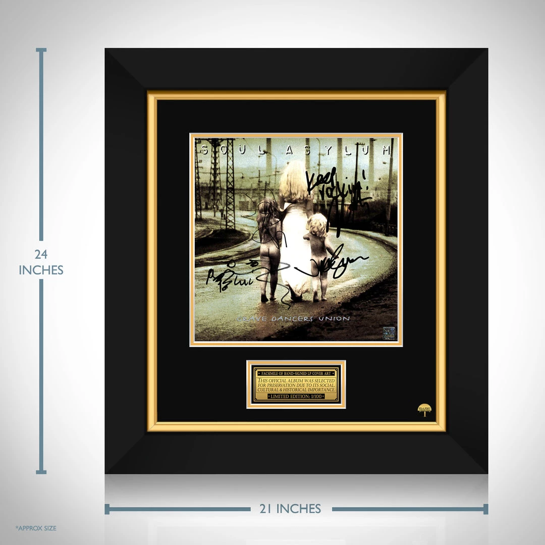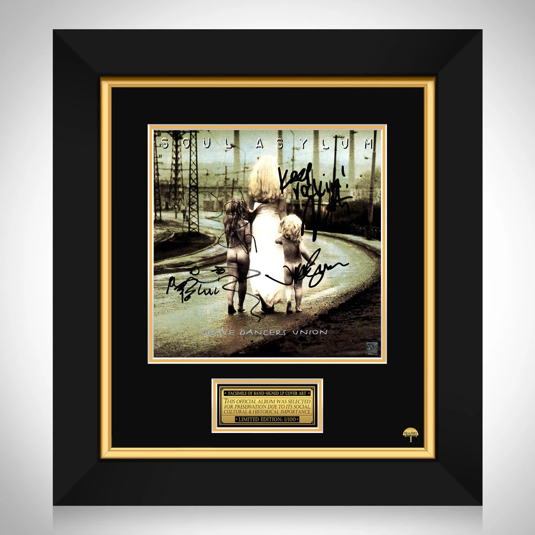 Pay homage to one of the most iconic American alternative rock band of all time, Soul Asylum , with this gallery-framed, officially licensed, limited edition facsimile of the Hand-Signed Grave Dancers Union LP Cover originally signed by Dave Pirner, Michael Bland, Justin Sharbono & Winston Roye , of which is strictly limited to 100 units Worldwide, and has been approved and numbered accordingly.