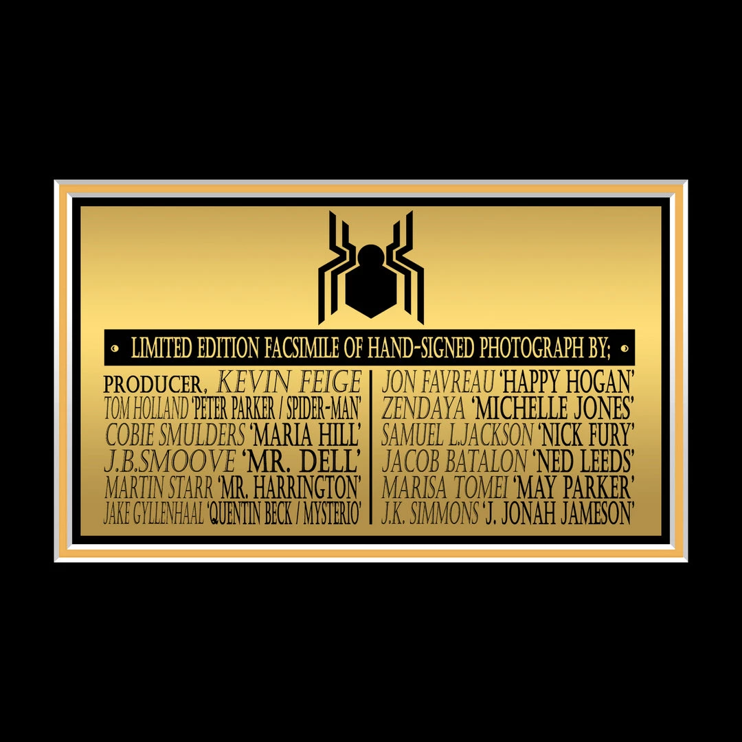 Pay homage to one of the most iconic films of all time, Spider-Man – ‘Far From Home’, with this gallery-framed, officially licensed, limited edition facsimile of hand-signed movie mini poster, originally signed by Kevin Feige, Tom Holland, Cobie Smulders, J.B. Smoove, Martin Starr, Jake Gyllenhaal, Jon Favreau, Zendaya, Samuel L. Jackson, Jacob Batalon, Marisa Tomei and J.K. Simmons, of which is strictly limited to 100 units Worldwide, and has been approved and numbered accordingly.
