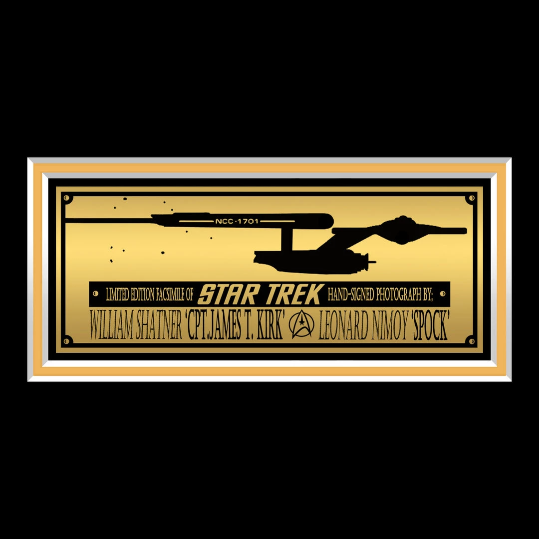 Pay homage to one of the most iconic TV Series of all time, Star Trek, with this gallery-framed, officially licensed, limited edition facsimile of hand-signed photo of Captain Kirk and Spock, originally signed by actors William Shatner & the late, great Leonard Nimoy, of which is strictly limited to 100 units Worldwide, and has been approved and numbered accordingly.