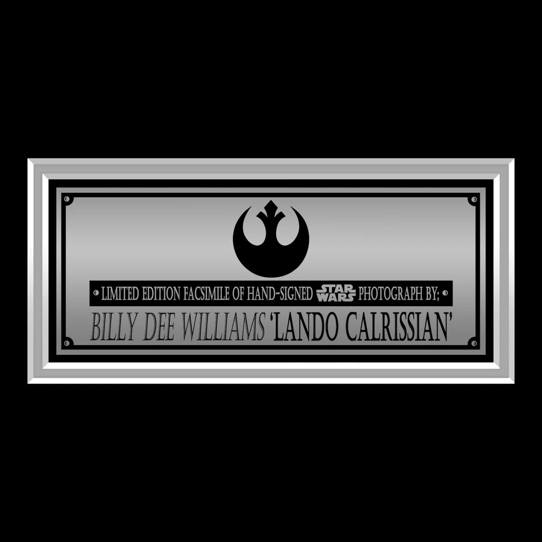 Pay homage to Star Wars ‘Lando’ with this gallery-framed, officially licensed, limited edition facsimile of hand-signed photo, originally signed by Billy Dee Williams, of which is strictly limited to 100 units Worldwide, and has been approved and numbered accordingly.