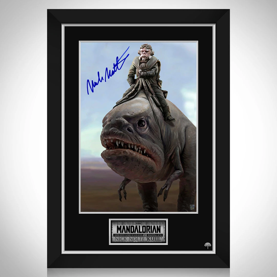 Pay homage to the Epic franchise Star Wars and the new live-action Star Wars television series made for Disney Plus, The Mandalorian, with this gallery-framed, officially licensed, limited edition facsimile of the Hand-Signed Star Wars, The Mandalorian artwork, originally signed by Nick Nolte. of which is strictly limited to 100 units Worldwide, and has been approved and numbered accordingly.