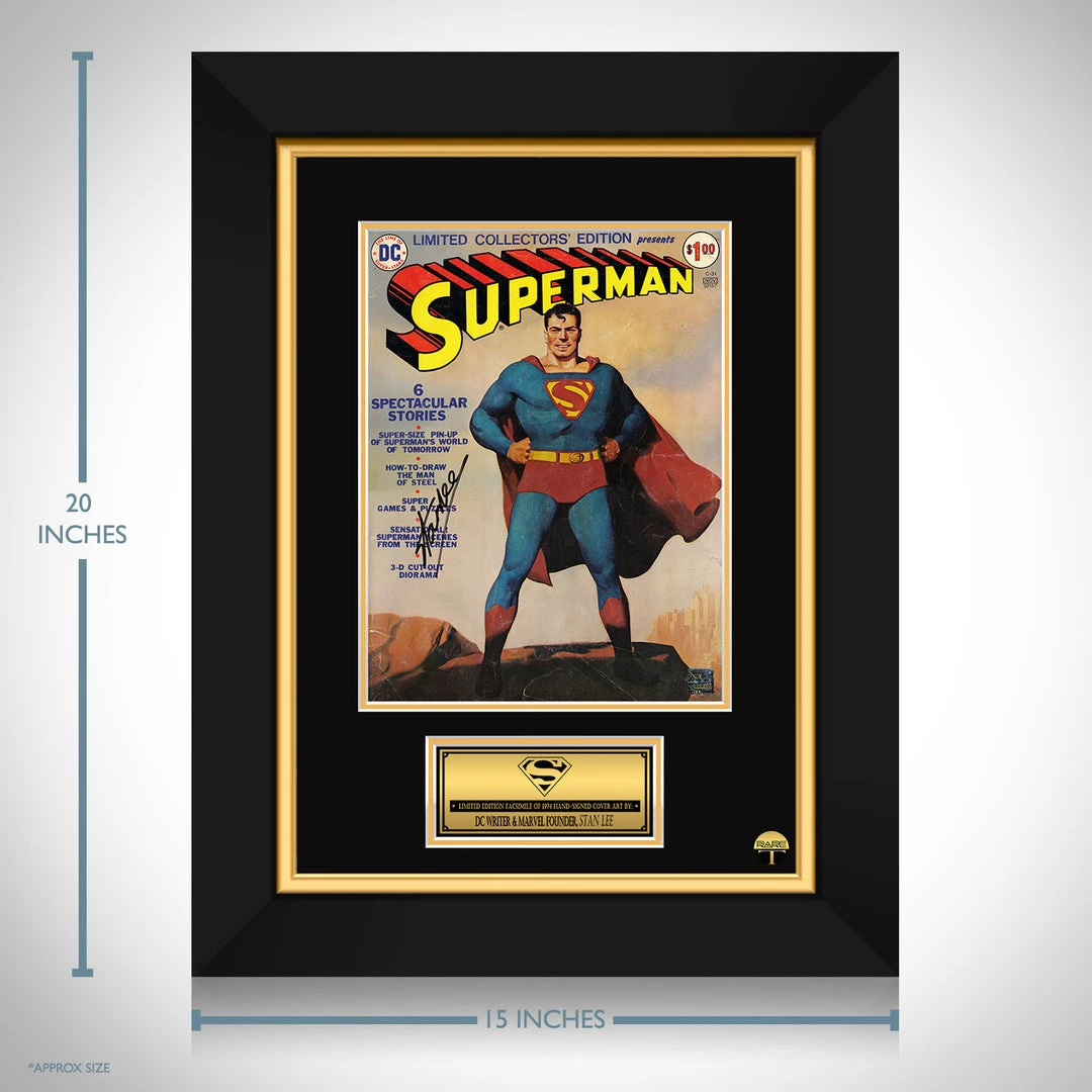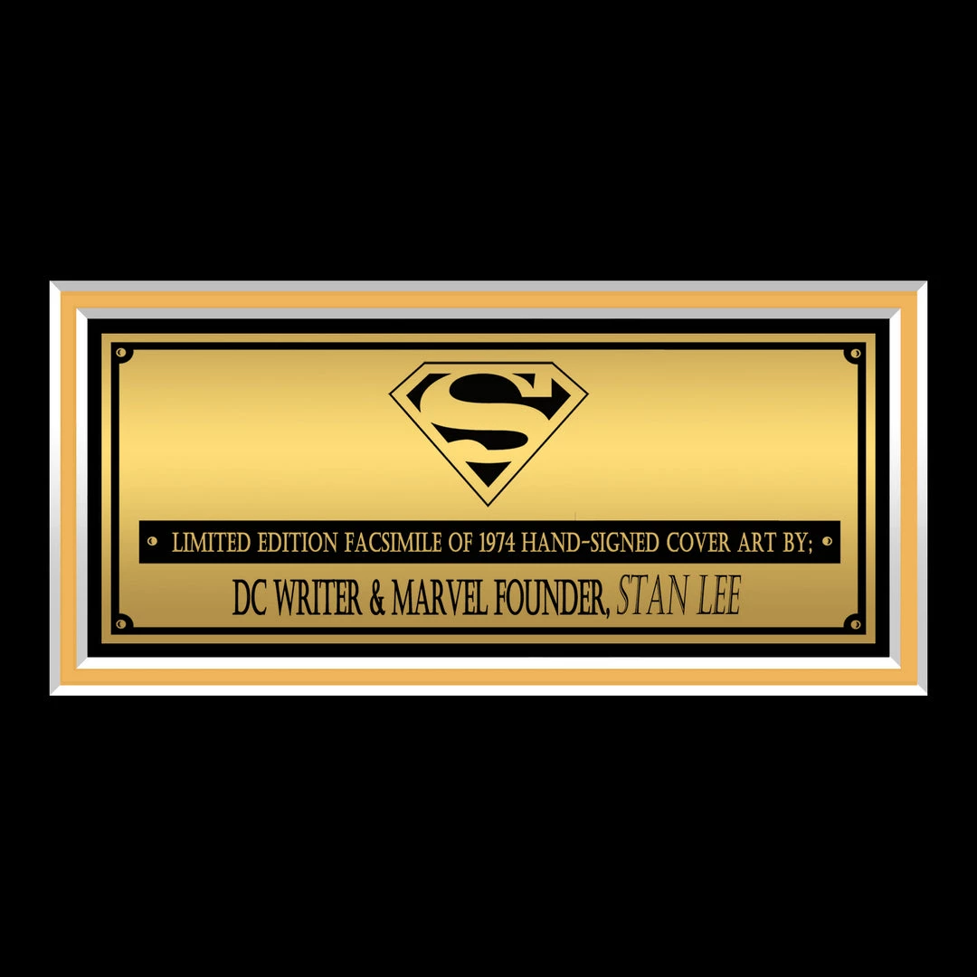 Pay homage to Superman , with this gallery-framed, officially licensed, limited edition facsimile of hand-signed Superman Comic Book Cover Art, originally signed by Stan Lee, of which is strictly limited to 100 units Worldwide, and has been approved and numbered accordingly.