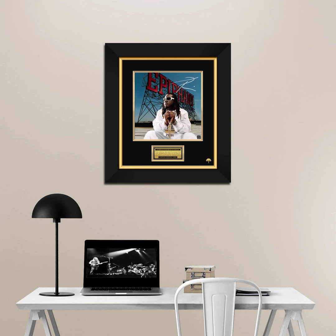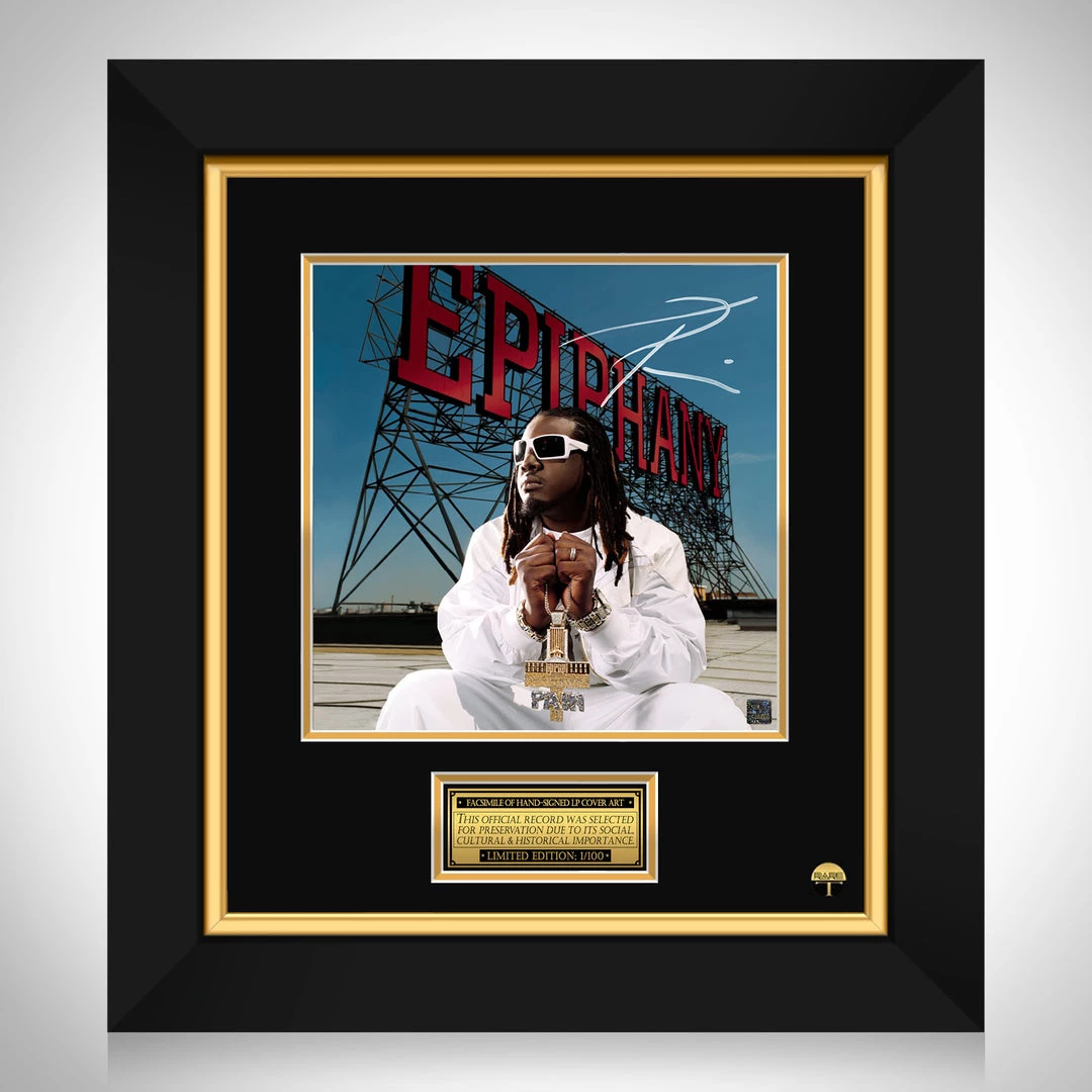 Pay homage to one of the most iconic rapper of all time, T-Pain , with this gallery-framed, officially licensed, limited edition facsimile of the Hand-Signed Epiphany LP Cover originally signed by T-Pain , of which is strictly limited to 100 units Worldwide, and has been approved and numbered accordingly.