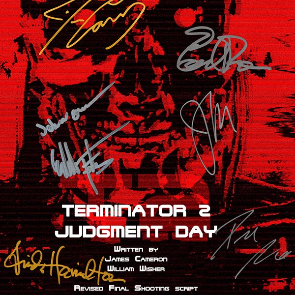 Pay homage to Terminator 2 Judgement Day , with this TriStar Pictures fully licensed facsimile of the official signed movie script, originally signed by actors James Cameron, Arnold Schwarzenegger, Linda Hamilton, Edward Furlong, Robert Patrick, Earl Boen, Joe Morton & Dean Norris , of which is strictly limited to 100 units Worldwide and has been approved and numbered accordingly.