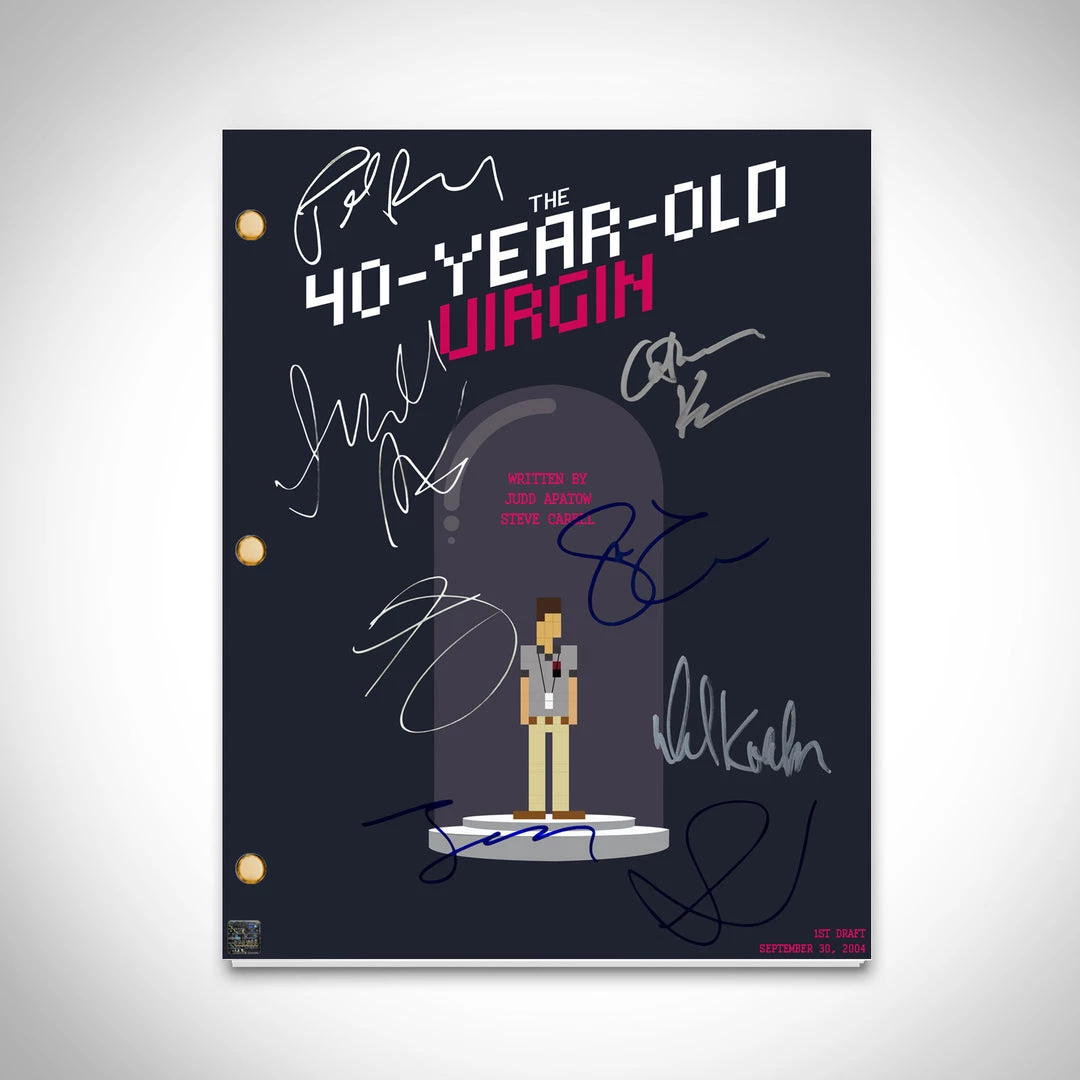 Pay homage to The 40 Year-Old Virgin , with this Universal Pictures fully licensed facsimile of the official signed movie script, originally signed by Judd Apatow, Seth Rogen, Steve Carell, Catherine Keener, Paul Rudd, Jonah Hill, David Koechner & Kevin Hart , of which is strictly limited to 100 units Worldwide and has been approved and numbered accordingly.