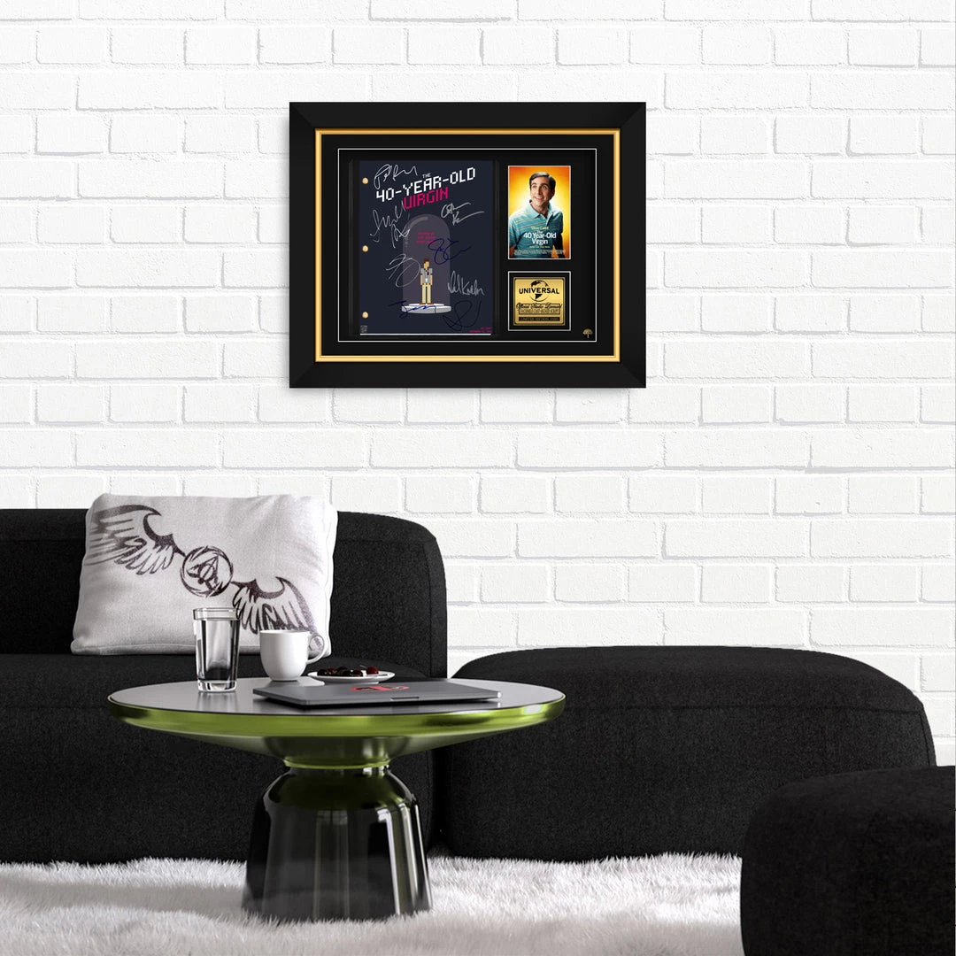 — Collector Grade Proprietary Exclusive VELVET TOUCH water/scratch resistant cover. — Collectible Facsimile of Original Hand-Signed The 40 Year-Old Virgin movie Script Custom Frame.