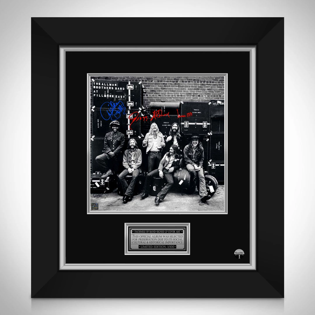 Pay homage to one of the most iconic American rock band of all time, The Allman Brothers Band , with this gallery-framed, officially licensed, limited edition facsimile of the Hand-Signed At Fillmore East LP Cover originally signed by Butch Trucks, Dickey Betts, Gregg Allman & Jaimoe Johanson , of which is strictly limited to 100 units Worldwide, and has been approved and numbered accordingly.