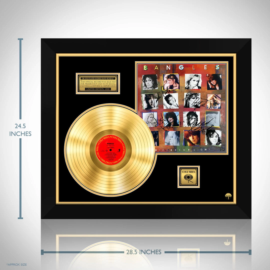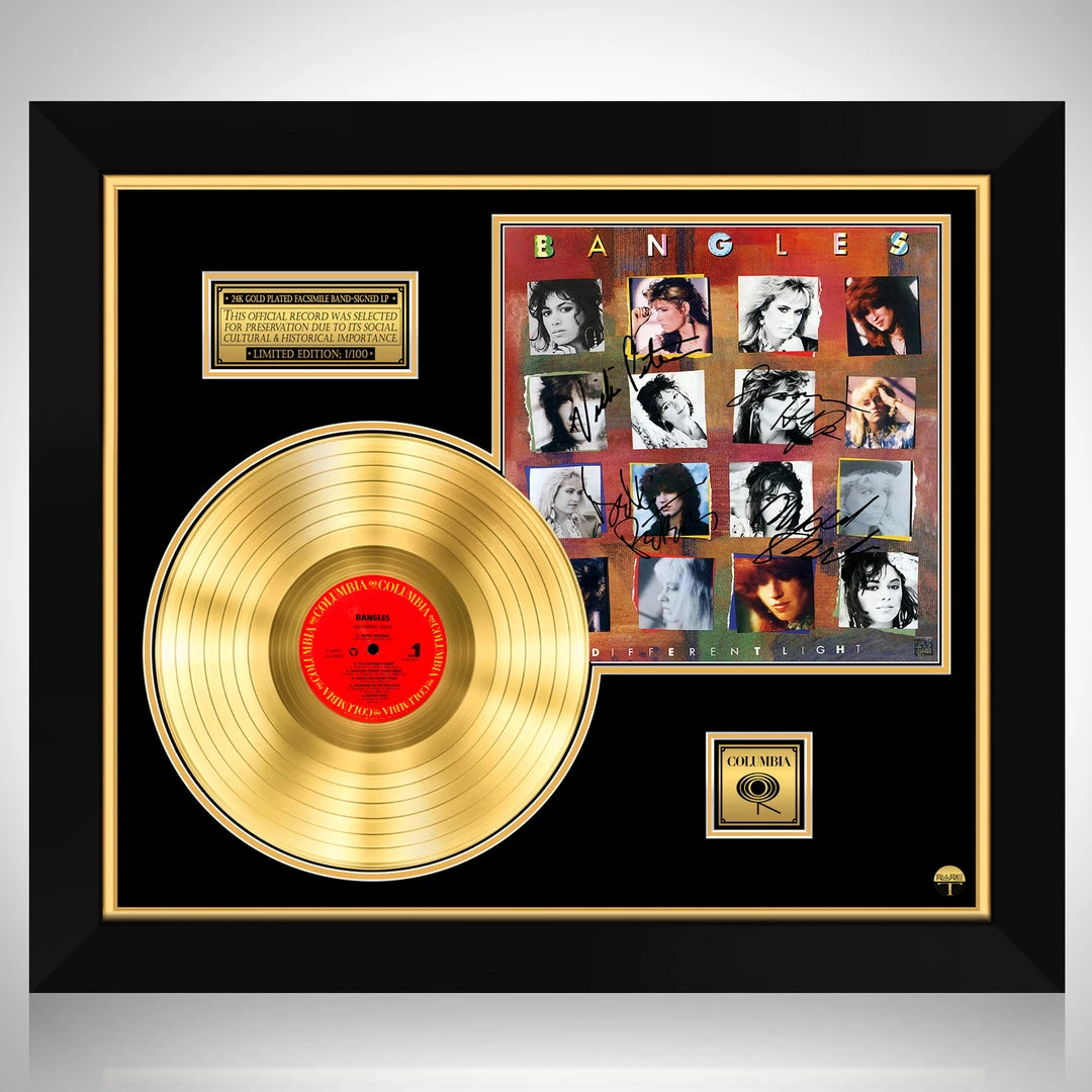 Pay homage to one of the most iconic American pop rock band of all time The Bangles , with this gallery-framed, authentic Columbia Records fully licensed facsimile of the official Hand-Signed 24K Gold LP Record and LP Cover Different Light Originally signed by Susanna Hoffs, Vicki Peterson, Debbi Peterson & Michael Steele , of which is strictly limited to 100 units Worldwide and has been approved and numbered accordingly.