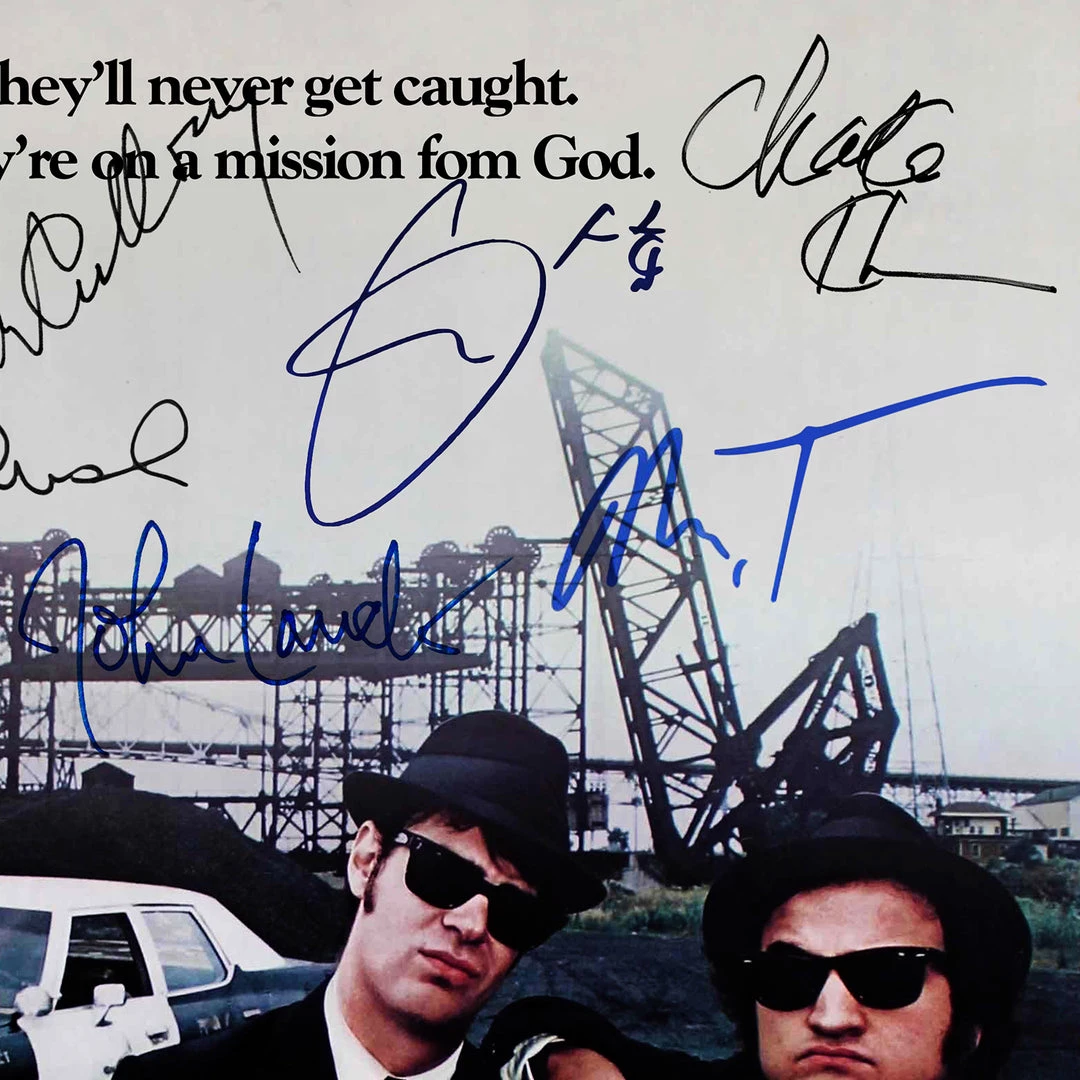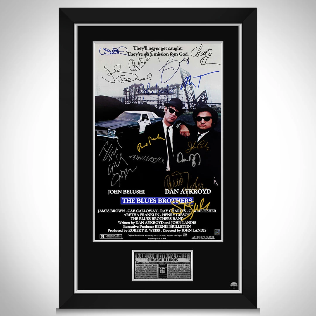 Pay homage to one of the most iconic films of all time, The Blues Brothers, with this gallery-framed, officially licensed, limited edition facsimile of hand-signed movie mini poster, originally signed by John Belushi, Dan Aykroyd, James Brown, Cab Calloway, Aretha Franklin, Carrie Fisher, John Candy, Chaka Khan, Paul Reubens, John Lee Hooker, Steven Spielberg, Joe Walsh, Mr. T.and John Landis , of which is strictly limited to 100 units Worldwide, and has been approved and numbered accordingly.