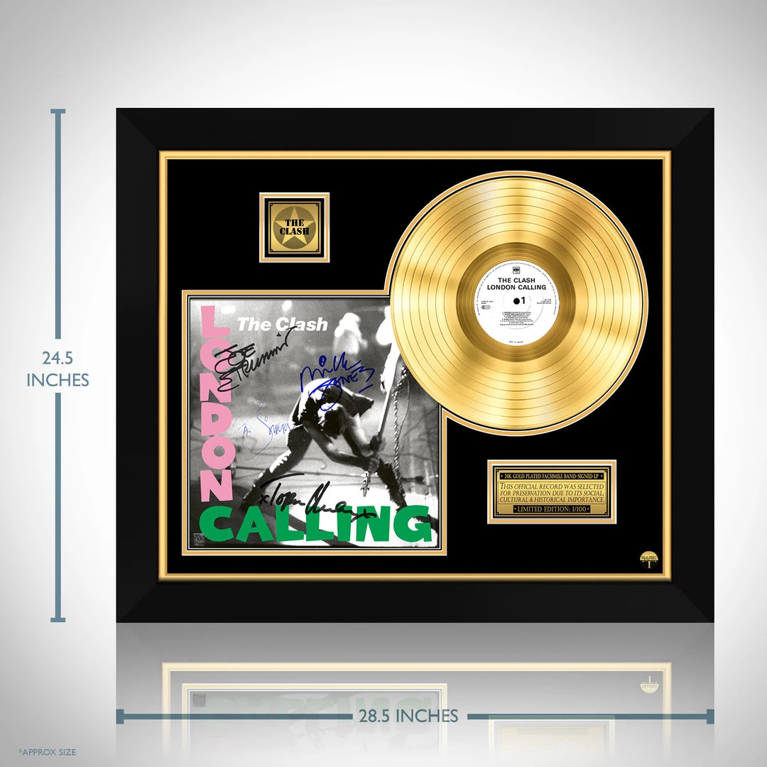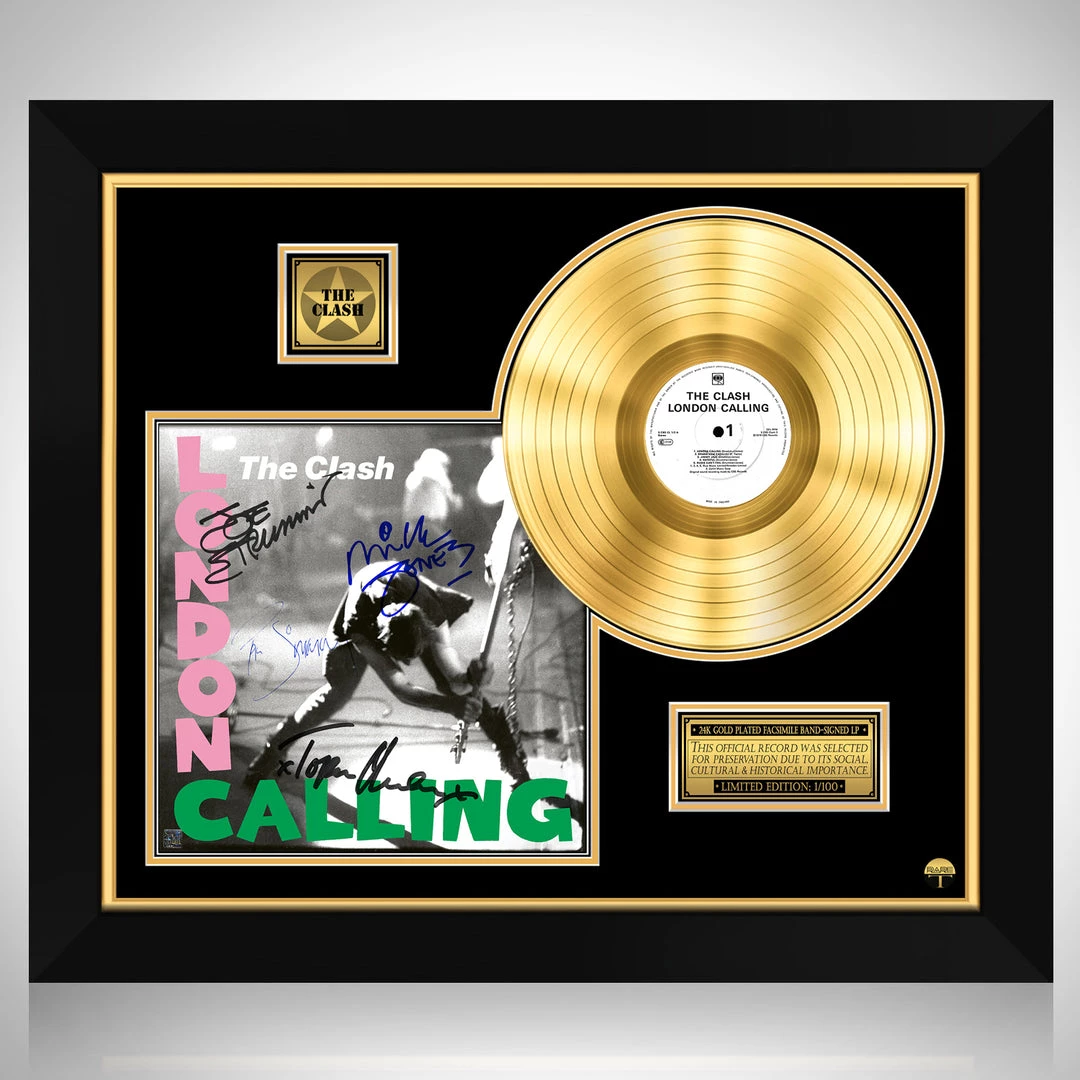 Pay homage to one of the most iconic punk rock band of all time The Clash , with this gallery-framed, authentic CBS Records fully licensed facsimile of the official Hand-Signed 24K Gold LP Record and LP Cover London Calling Originally signed by Joe Strummer, Mick Jones, Paul Simonon & Topper Headon , of which is strictly limited to 100 units Worldwide and has been approved and numbered accordingly.