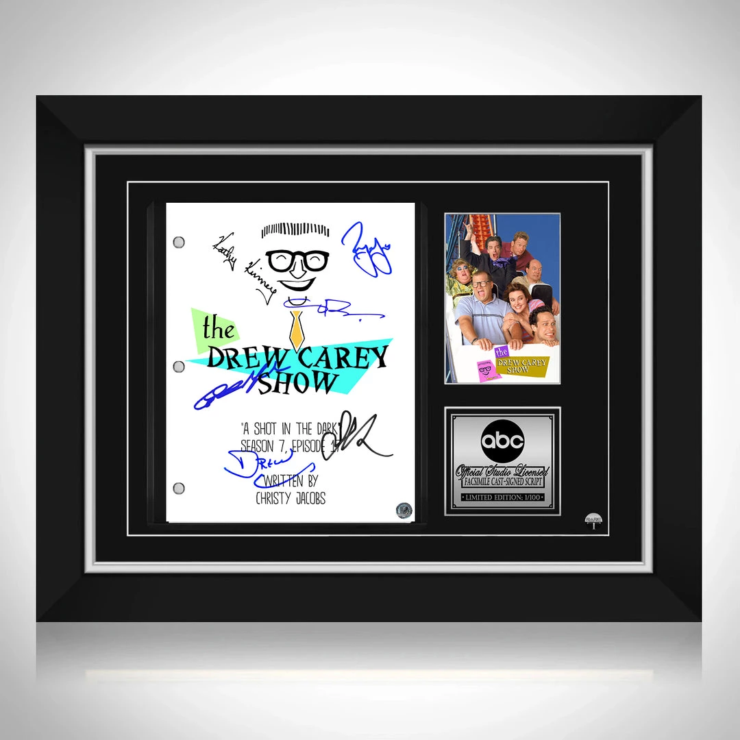 Pay homage to The Drew Carey Show , with this ABC fully licensed facsimile of the official signed TV Series script, originally signed by actors Drew Carey, Diedrich Bader, Kathy Kinney, Ryan Styles, Craig Ferguson, Christa Miller & John Carroll Lynch , of which is strictly limited to 100 units Worldwide and has been approved and numbered accordingly.