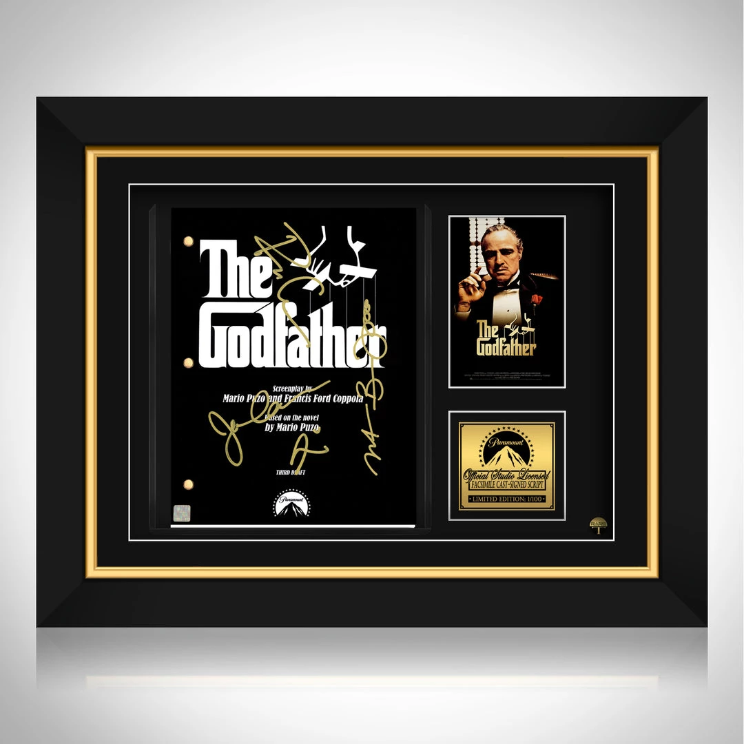 Pay homage to The Godfather , with this Paramount Pictures  fully licensed facsimile of the official signed movie script, originally signed by actors Al Pacino, James Caan, Francis Ford Coppola and Marlon Brando , of which is strictly limited to 100 units Worldwide and has been approved and numbered accordingly.