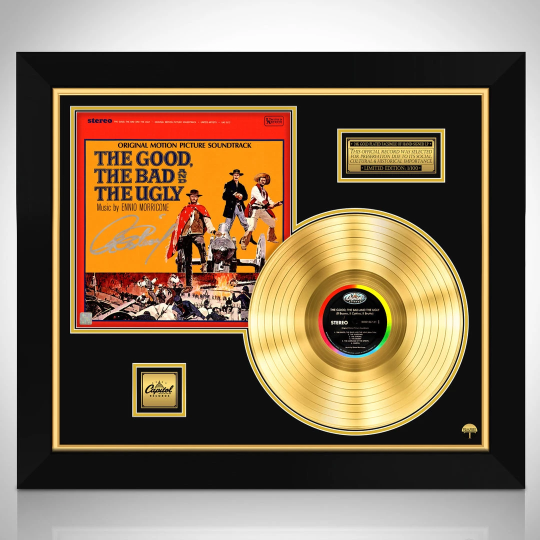 Æ’?? Collectible The Good, The Bad & The Ugly Facsimile 24K Gold Plated LP + Photo Custom Frame