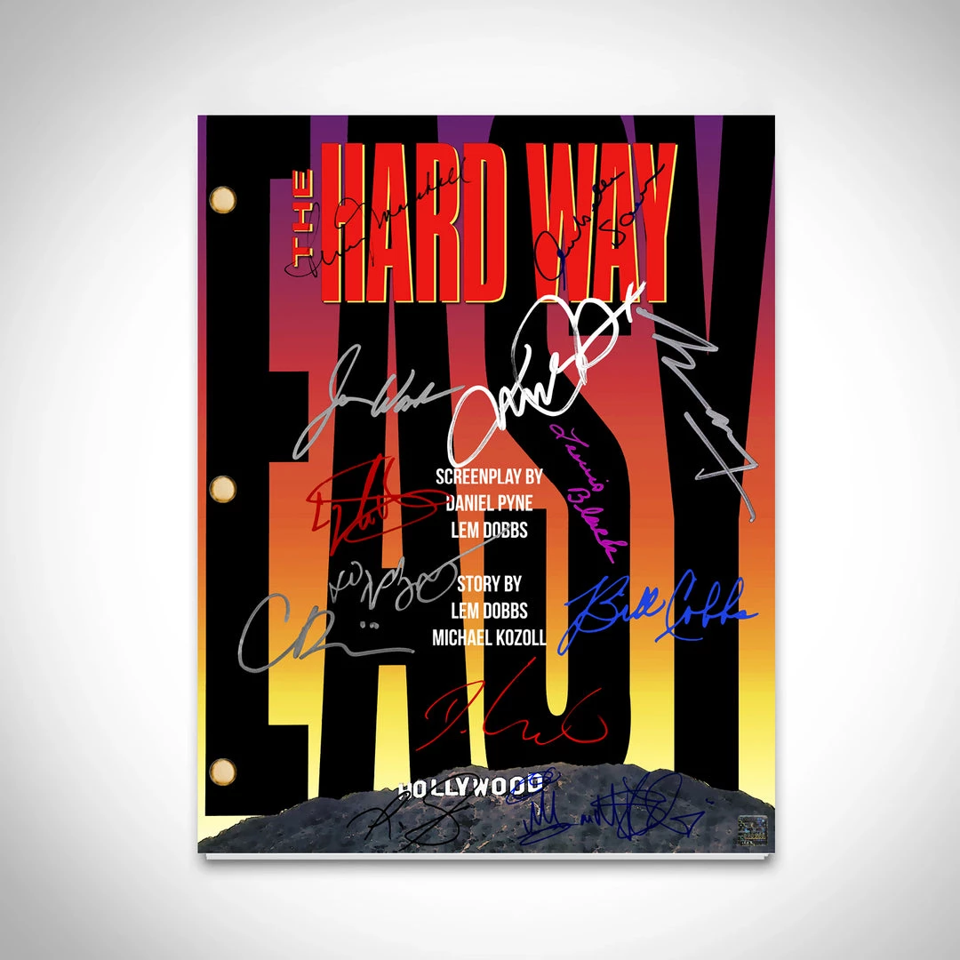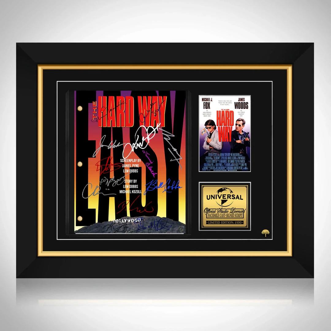 Pay homage to The Hard Way 1991 , with this Universal pictures fully licensed facsimile of the official signed movie transcript, originally signed by actors Michael J.Fox, James Woods, Stephen Lang, Annabella Sciorra, Penny Marshall, Luis Guzmán, LL Cool J, Delroy Lindo, Christina Ricci, Lewis Black, Kathy Najimy, Mos Def & Bill Cobbs , of which is strictly limited to 100 units Worldwide and has been approved and numbered accordingly.