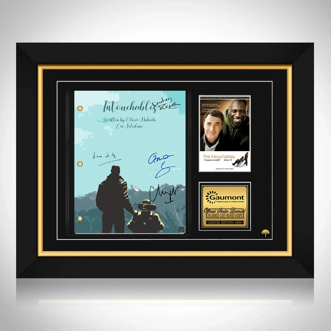 Pay homage to The Intouchables , with this Gaumont fully licensed facsimile of the official signed movie Transcriptย , originally signed by actors Franรงois Cluzet, Omar Sy, Anne Le Ny & Audrey Fleurot , of which is strictly limited to 100 units Worldwide and has been approved and numbered accordingly.