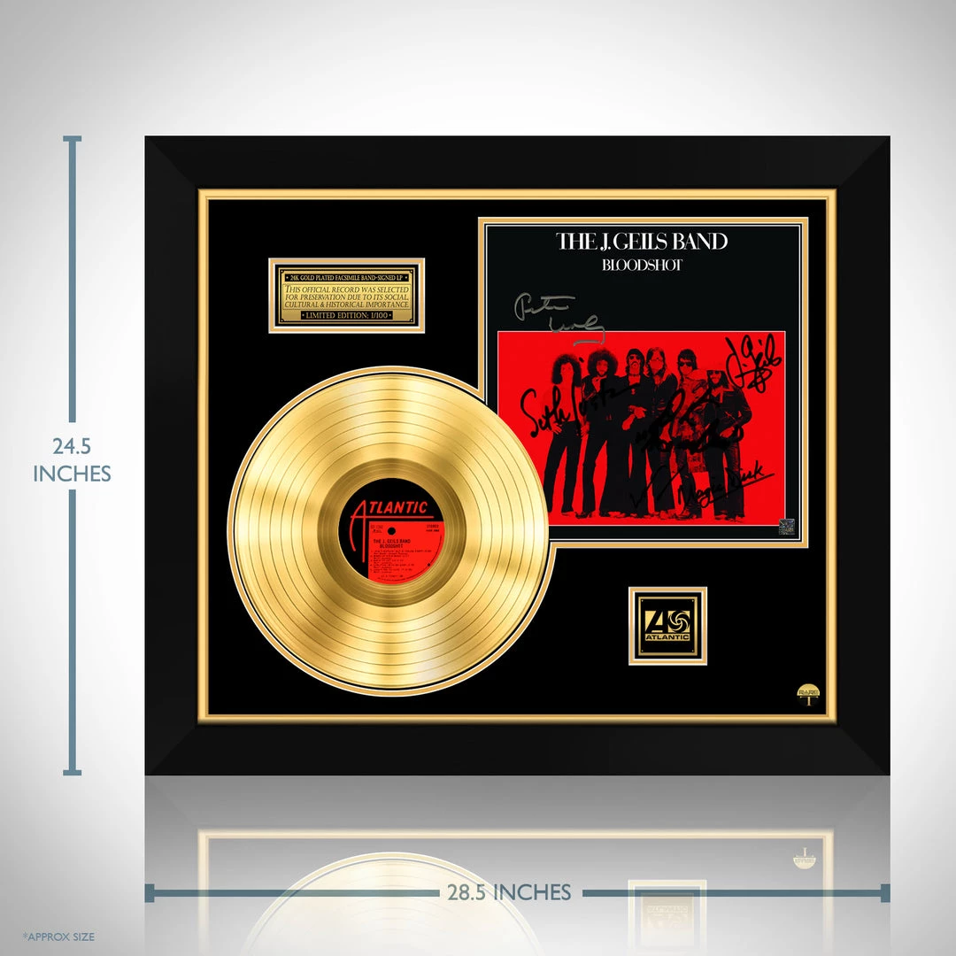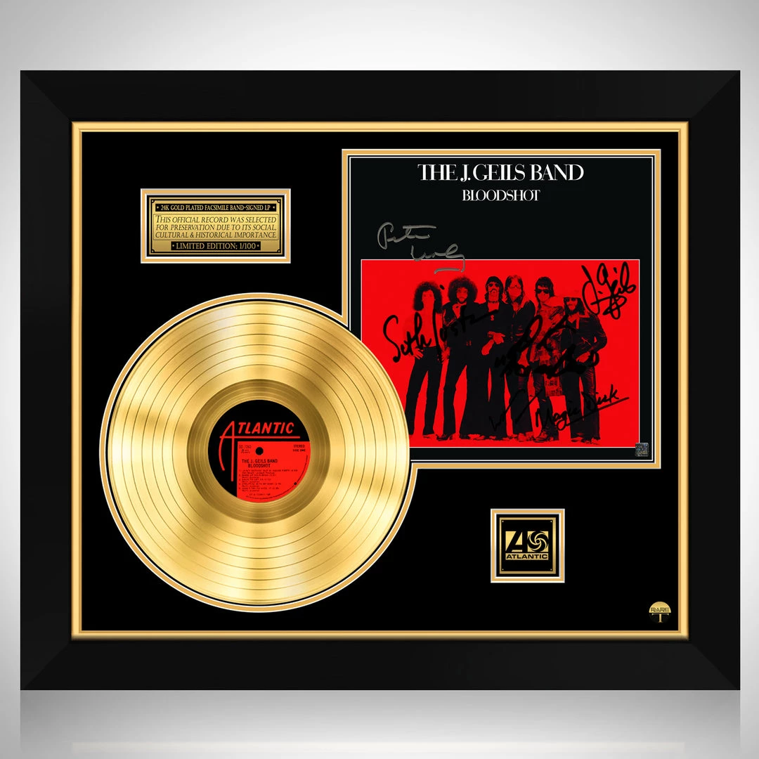 Pay homage to one of the most iconic American rock band of all time The J. Geils Band , with this gallery-framed, authentic Atlantic Records fully licensed facsimile of the official Hand-Signed 24K Gold LP Record and LP Cover Bloodshot Originally signed by J. Geils, Magic Dick, Seth Justman, Danny Klien, Stephen Bladd & Peter Wolf , of which is strictly limited to 100 units Worldwide and has been approved and numbered accordingly.