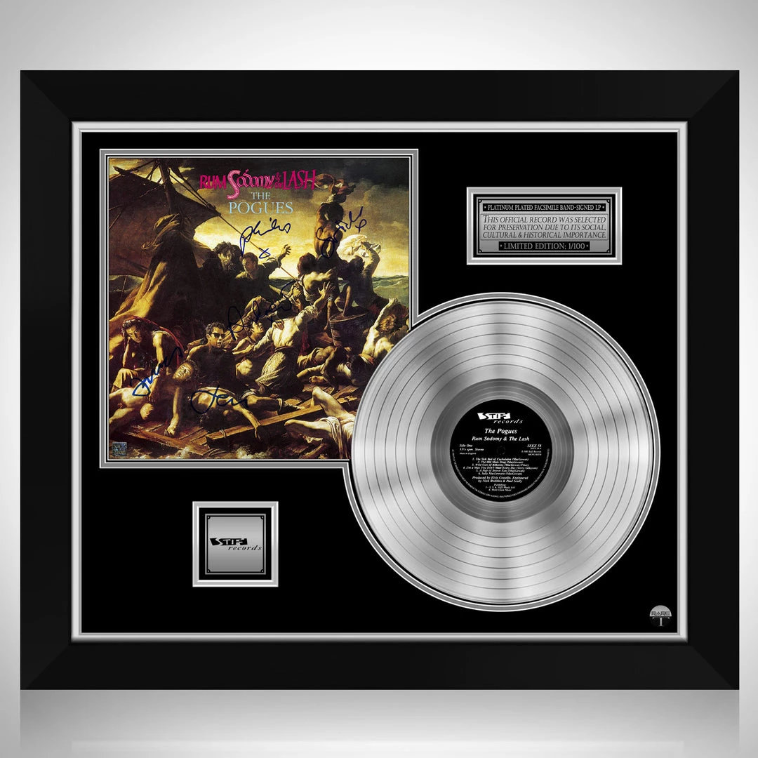 Pay homage to one of the most iconic English or Anglo-Irish Celtic punk band of all time The Pogues , with this gallery-framed, authentic Stiff Records fully licensed facsimile of the official Hand-Signed Platinum Plated LP Record and LP Cover Rum Sodomy & the Lash Originally signed by Shane MacGowan, Spider Stacy, James Fearnley, Jem Finer, Andrew Ranken & Philip Chevron , of which is strictly limited to 100 units Worldwide and has been approved and numbered accordingly.