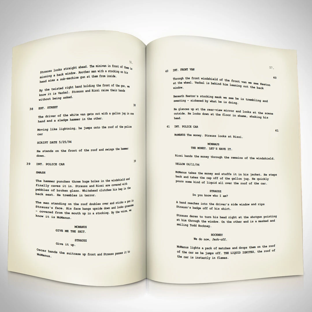 Pay homage to The Usual Suspects , with this Gramercy Pictures fully licensed facsimile of the official signed movie script, originally signed by actors Stephen Baldwin, Gabriel Byrne, Benicio Del Toro, Kevin Pollak, Kevin Spacey, Chazz Palminteri, Pete Postlehwaite, Giancarlo Esposito, Dan Hedaya, Clark Gregg & Louis Lombardi , of which is strictly limited to 100 units Worldwide and has been approved and numbered accordingly.