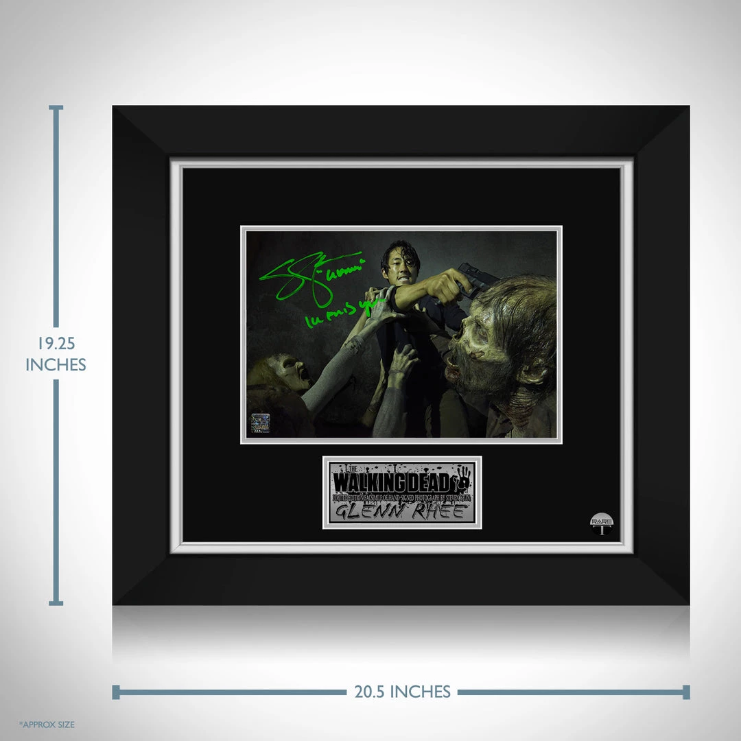 Pay homage to The Walking Dead, with this gallery-framed, officially licensed, limited edition facsimile of the Hand-Signed movie promo photo, originally signed by Steven Yeun, of which is strictly limited to 100 units Worldwide, and has been approved and numbered accordingly.