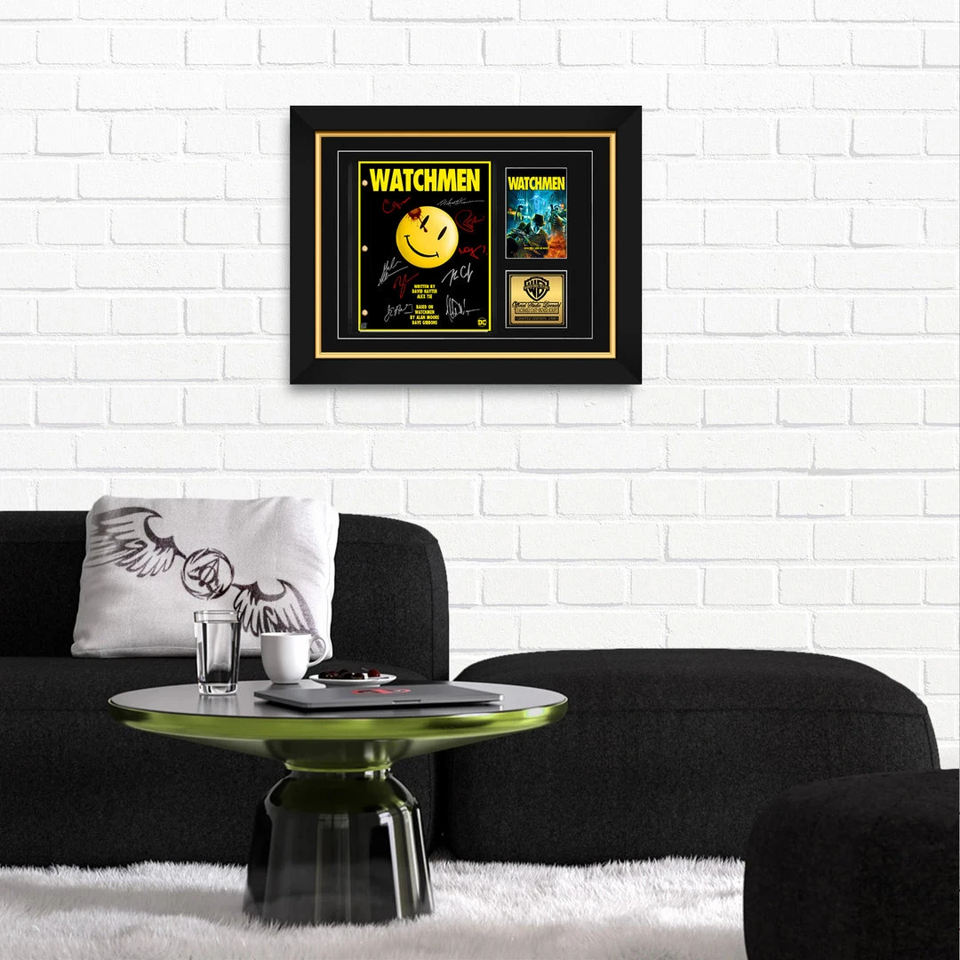 — Collector Grade Proprietary Exclusive VELVET TOUCH water/scratch resistant cover. — Collectible Facsimile of Original Hand-Signed The Watchmen movie Script Custom Frame.