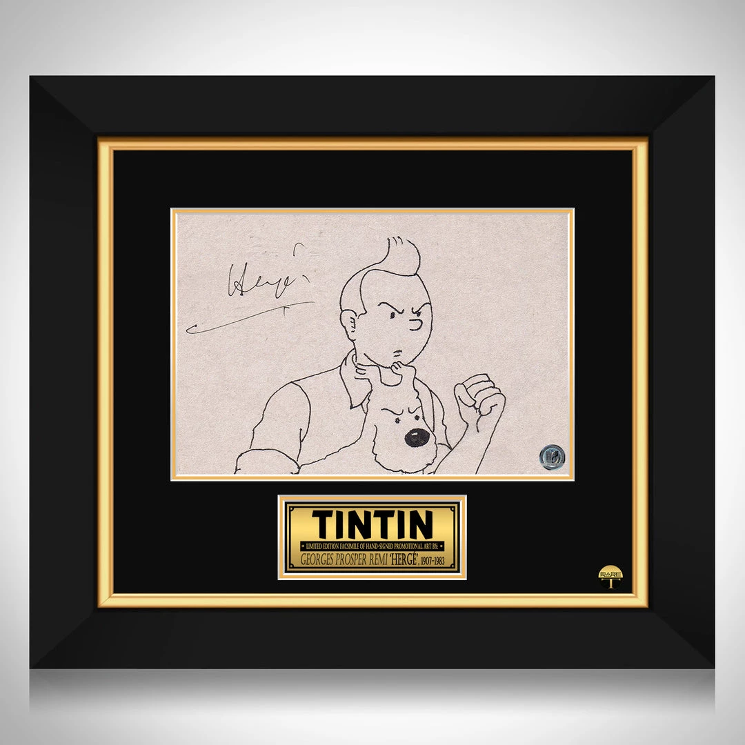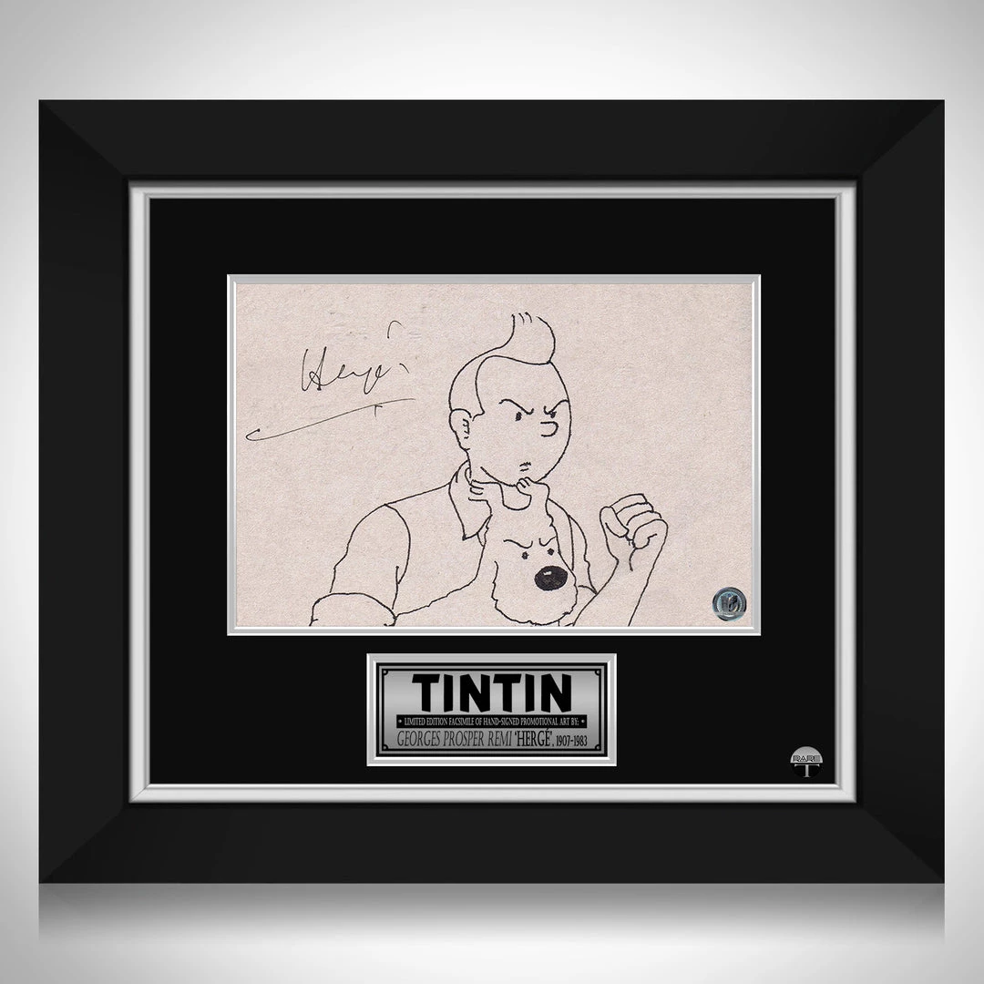 — Collectible TINTIN Hergé Art facsimile photo of original Hand-Signed photo custom frame.