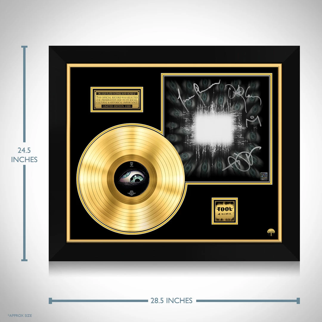 Pay homage to one of the most iconic band of all time Tool , with this gallery-framed, authentic Zoo Entertainment fully licensed facsimile of the official Hand-Signed 24K Gold LP Record and EP Cover Aenima Originally signed by Maynard James Keenan, Adam Jones, Justin Chancellor & Danny Carey , of which is strictly limited to 100 units Worldwide and has been approved and numbered accordingly.