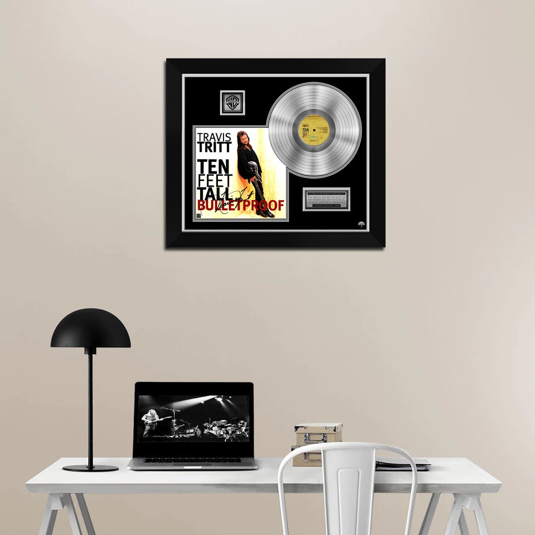 โ Collectible Travis Tritt Facsimile Hand-Signed Platinum Plated LP Custom Frame